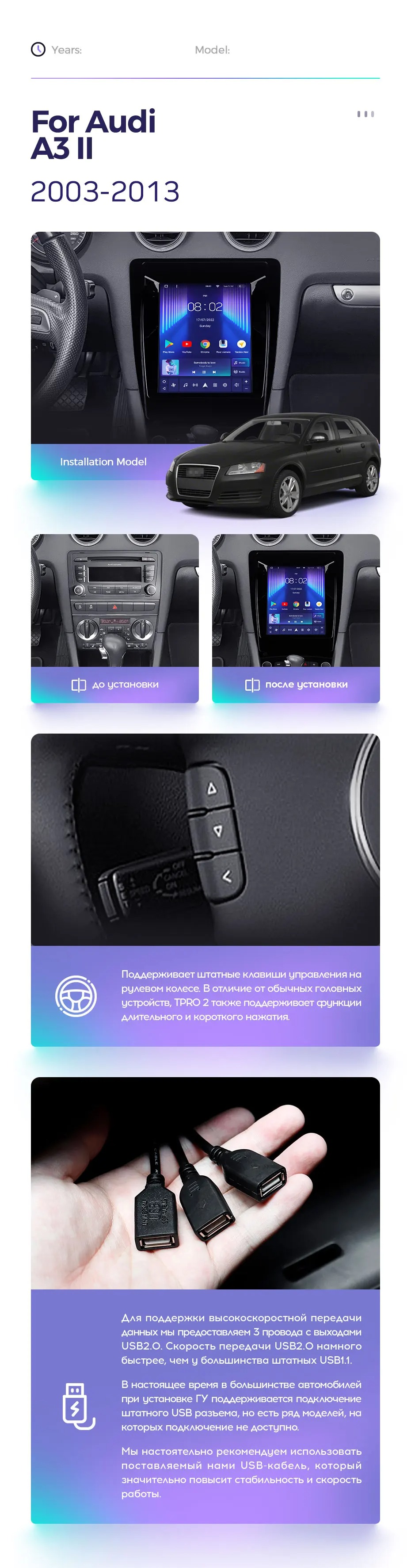 Штатная магнитола Tesla style Teyes TPRO 2 4/64 Audi A3 2 8P (2003-2013) - купить всего за 57 600 руб. в интернет-магазине в Орле Teyes.com.ru. ✓ Самый лучший выбор мультимедиа ✓ Лучшая замена штатному ГУ ✓ Тел. +7 (800) 775-31-74