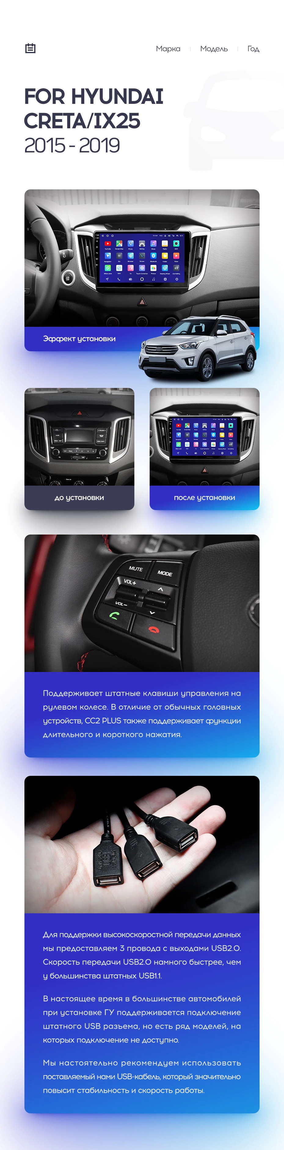 Штатная магнитола Teyes CC2 Plus 4/32 Hyundai Creta (2015-2020) - купить всего за 33 500 руб. в интернет-магазине в Орле Teyes.com.ru. ✓ Самый лучший выбор мультимедиа ✓ Лучшая замена штатному ГУ ✓ Тел. +7 (800) 775-31-74