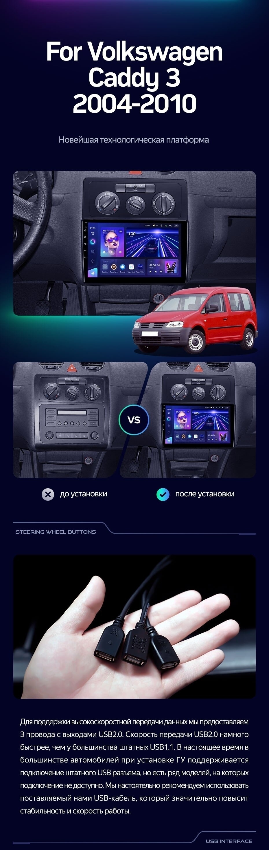 Штатная магнитола Teyes CC3 2K 4/32 Volkswagen Caddy 2K (2004-2010) - купить всего за 40 300 руб. в интернет-магазине в Орле Teyes.com.ru. ✓ Самый лучший выбор мультимедиа ✓ Лучшая замена штатному ГУ ✓ Тел. +7 (800) 775-31-74