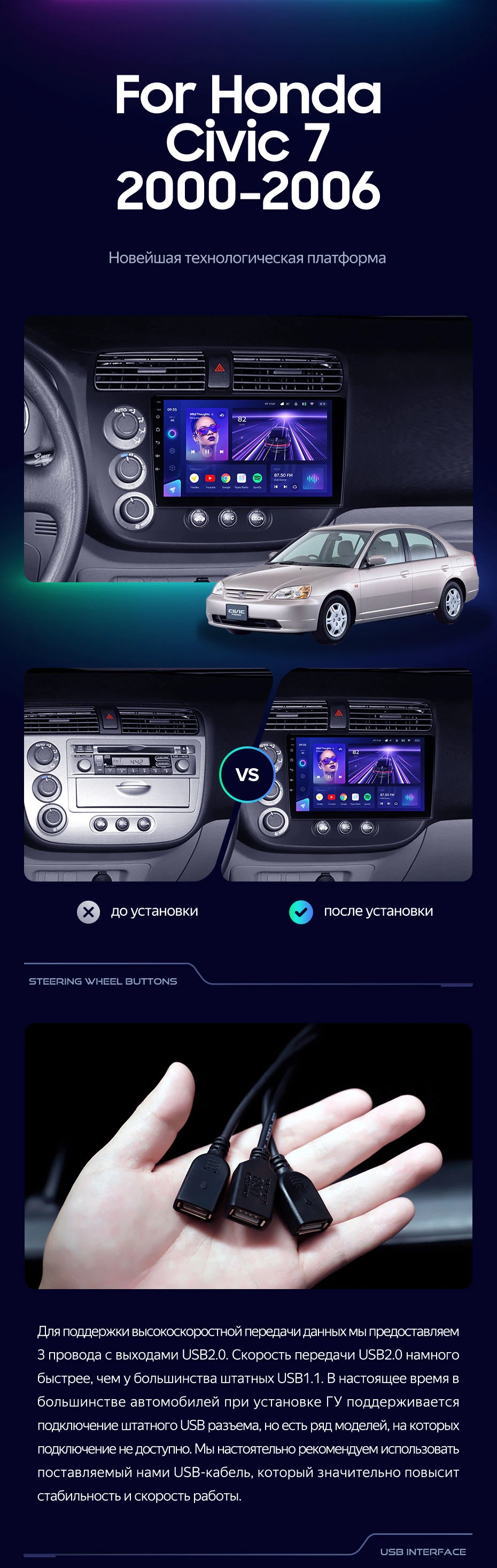 Штатная магнитола Teyes CC3 2K 360 6/128 Honda Civic 7 (2000-2006) F1 - купить всего за 54 900 руб. в интернет-магазине в Орле Teyes.com.ru. ✓ Самый лучший выбор мультимедиа ✓ Лучшая замена штатному ГУ ✓ Тел. +7 (800) 775-31-74