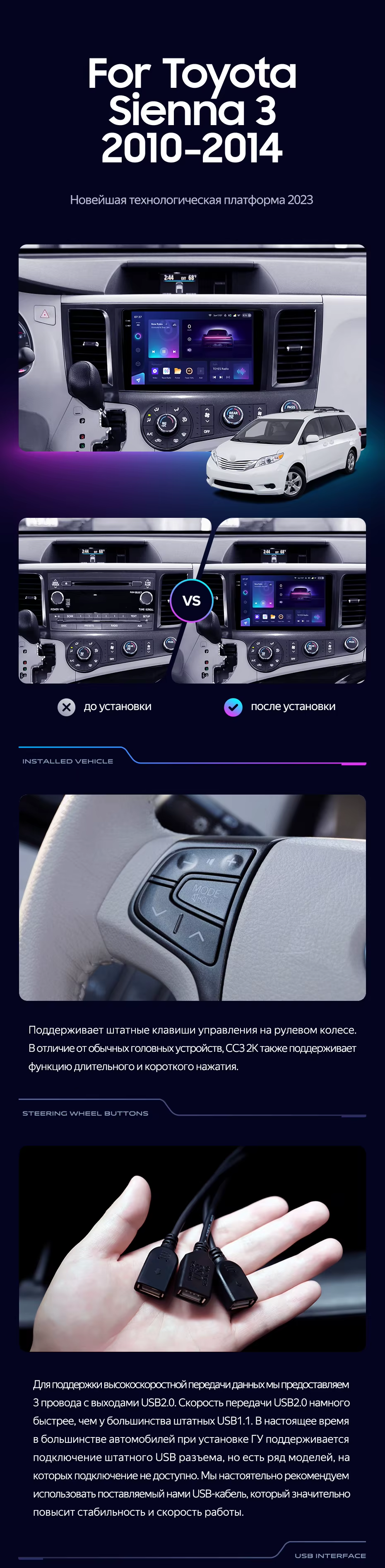 Штатная магнитола Teyes CC3 2K 360 6/128 Toyota Sienna 3 XL30 (2010-2014) - купить всего за 58 100 руб. в интернет-магазине в Орле Teyes.com.ru. ✓ Самый лучший выбор мультимедиа ✓ Лучшая замена штатному ГУ ✓ Тел. +7 (800) 775-31-74