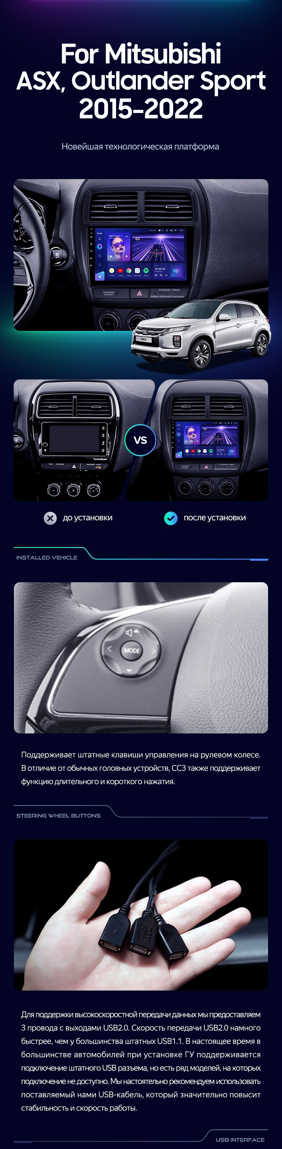 Штатная магнитола Teyes CC3 2K 4/32 Mitsubishi Outlander Sport (2015-2026) Тип-A - купить всего за 39 450 руб. в интернет-магазине в Орле Teyes.com.ru. ✓ Самый лучший выбор мультимедиа ✓ Лучшая замена штатному ГУ ✓ Тел. +7 (800) 775-31-74