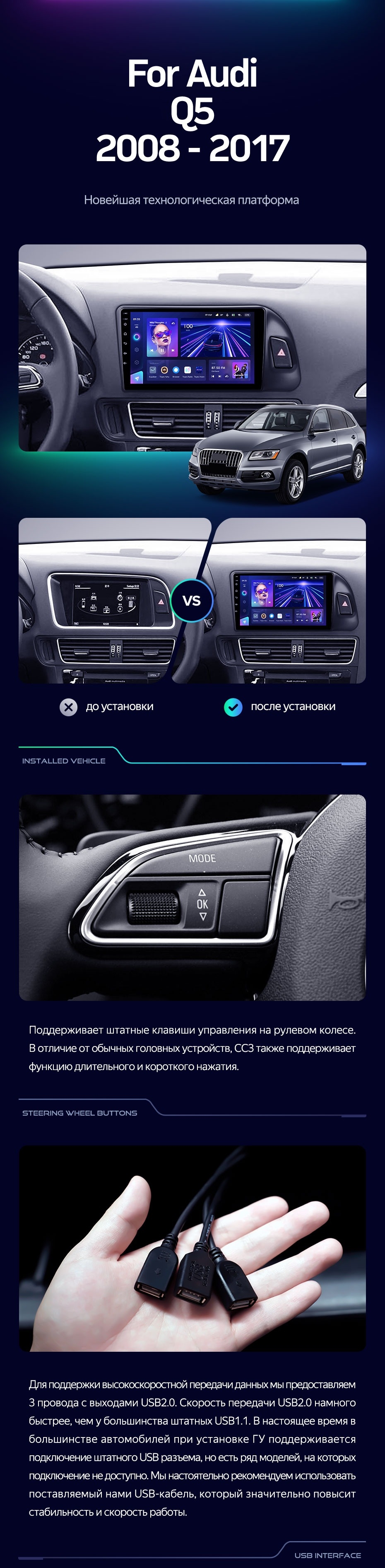 Штатная магнитола Teyes CC3 2K 4/64 Audi Q5 8R (2008-2017) Тип-A (13") - купить всего за 46 140 руб. в интернет-магазине в Орле Teyes.com.ru. ✓ Самый лучший выбор мультимедиа ✓ Лучшая замена штатному ГУ ✓ Тел. +7 (800) 775-31-74