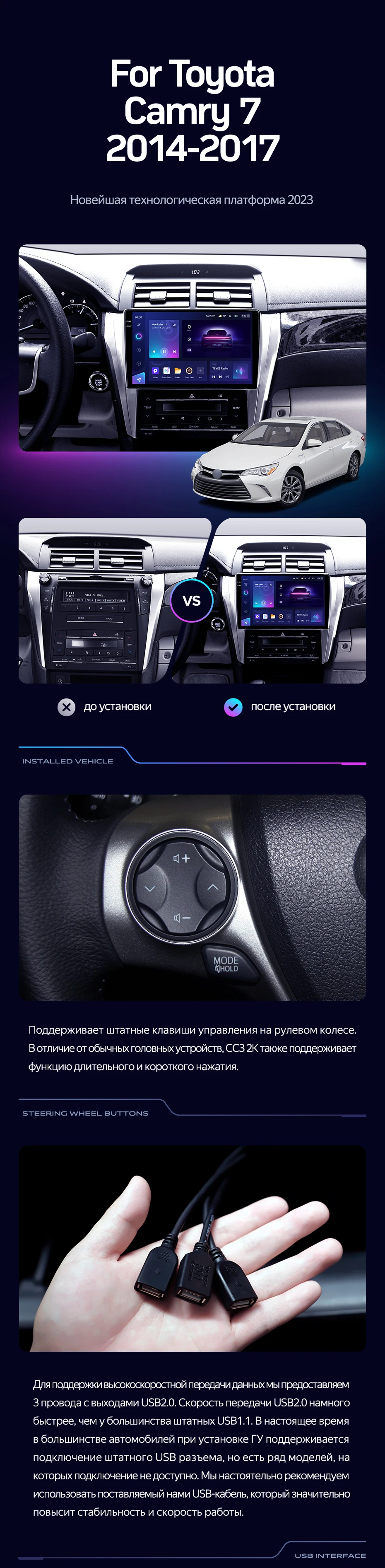 Штатная магнитола Teyes CC3 2K 6/128 Toyota Camry 7 XV 50 55 (2014-2017) (13") F4 - купить всего за 47 360 руб. в интернет-магазине в Орле Teyes.com.ru. ✓ Самый лучший выбор мультимедиа ✓ Лучшая замена штатному ГУ ✓ Тел. +7 (800) 775-31-74