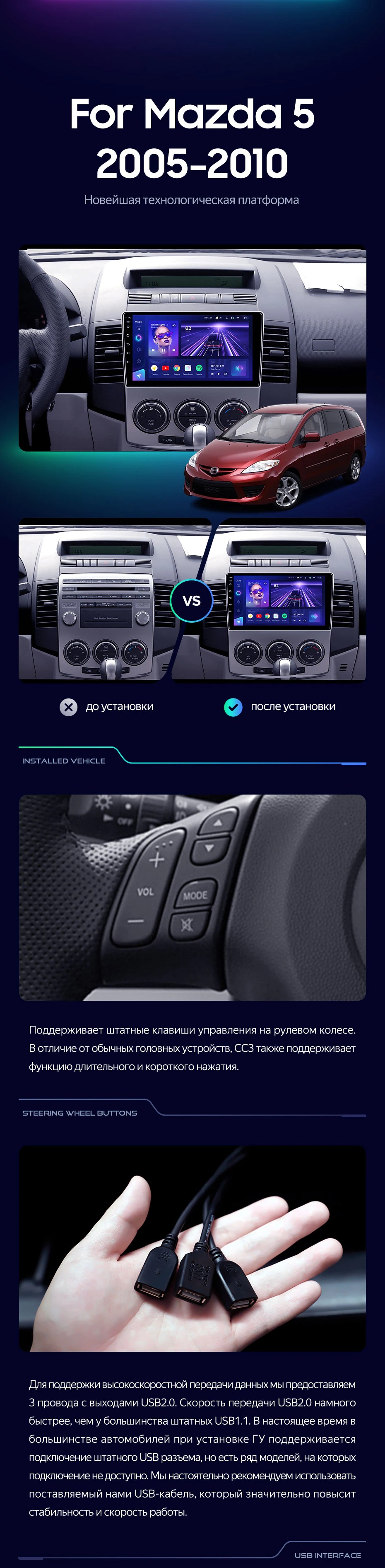 Штатная магнитола Teyes CC3 4/32 Mazda 5 2 CR (2005-2010) - купить всего за 33 130 руб. в интернет-магазине в Орле Teyes.com.ru. ✓ Самый лучший выбор мультимедиа ✓ Лучшая замена штатному ГУ ✓ Тел. +7 (800) 775-31-74