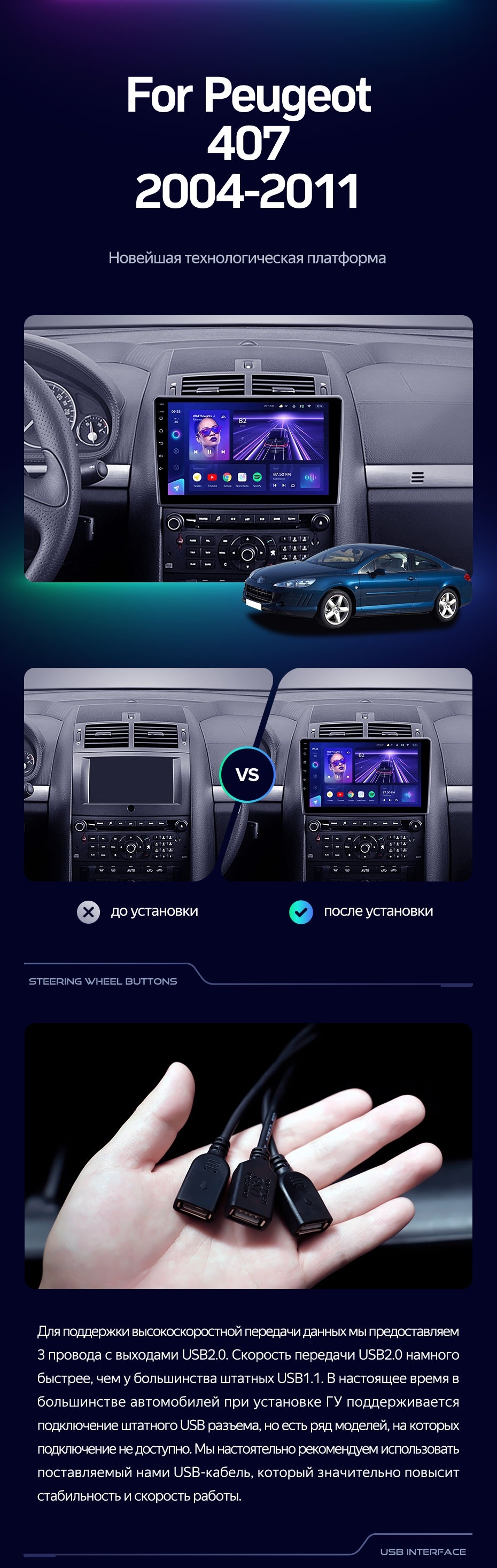 Штатная магнитола Teyes CC3 4/32 Peugeot 407 (2004-2011) F1 - купить всего за 34 130 руб. в интернет-магазине в Орле Teyes.com.ru. ✓ Самый лучший выбор мультимедиа ✓ Лучшая замена штатному ГУ ✓ Тел. +7 (800) 775-31-74