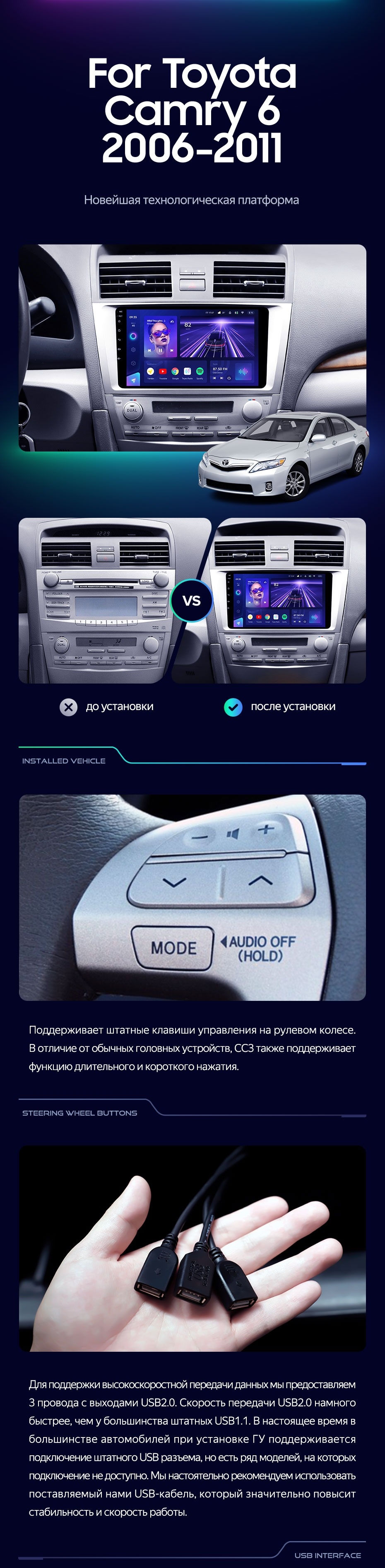 Штатная магнитола Teyes CC3 4/32 Toyota Camry 6 XV 40 (2006-2011) F1 - купить всего за 31 970 руб. в интернет-магазине в Орле Teyes.com.ru. ✓ Самый лучший выбор мультимедиа ✓ Лучшая замена штатному ГУ ✓ Тел. +7 (800) 775-31-74
