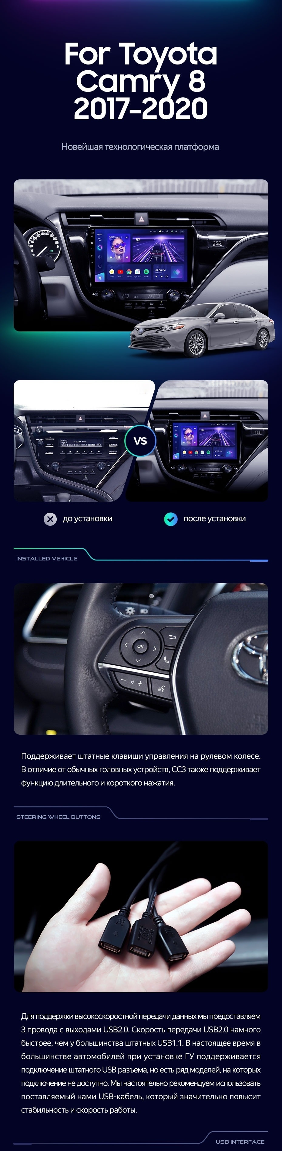 Штатная магнитола Teyes CC3 4/32 Toyota Camry 8 XV 70 (2017-2020) F1 - купить всего за 33 470 руб. в интернет-магазине в Орле Teyes.com.ru. ✓ Самый лучший выбор мультимедиа ✓ Лучшая замена штатному ГУ ✓ Тел. +7 (800) 775-31-74