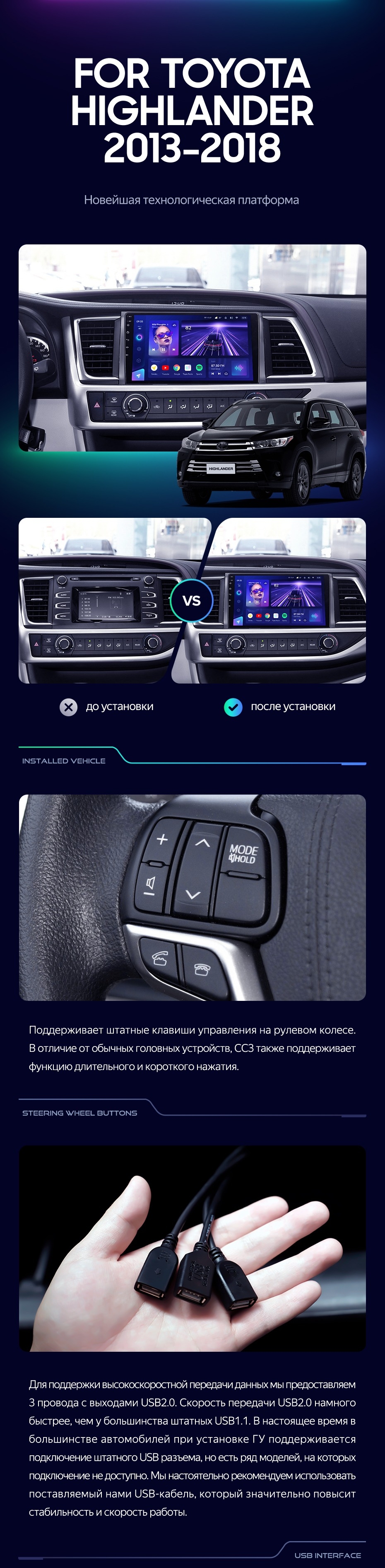 Штатная магнитола Teyes CC3 4/32 Toyota Highlander 3 XU50 (2013-2018) - купить всего за 33 240 руб. в интернет-магазине в Орле Teyes.com.ru. ✓ Самый лучший выбор мультимедиа ✓ Лучшая замена штатному ГУ ✓ Тел. +7 (800) 775-31-74