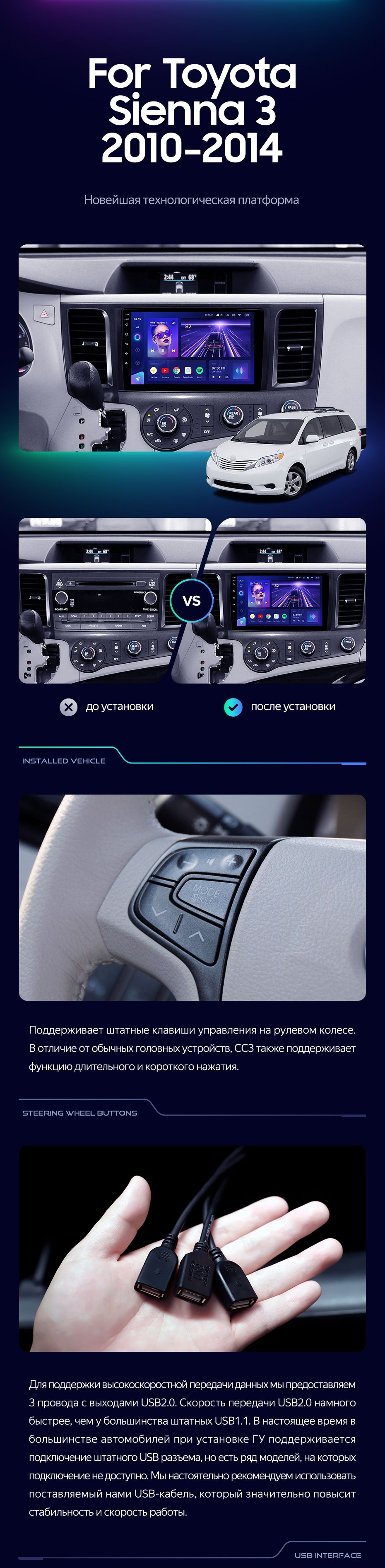 Штатная магнитола Teyes CC3 4/32 Toyota Sienna 3 XL30 (2010-2014) - купить всего за 35 730 руб. в интернет-магазине в Орле Teyes.com.ru. ✓ Самый лучший выбор мультимедиа ✓ Лучшая замена штатному ГУ ✓ Тел. +7 (800) 775-31-74