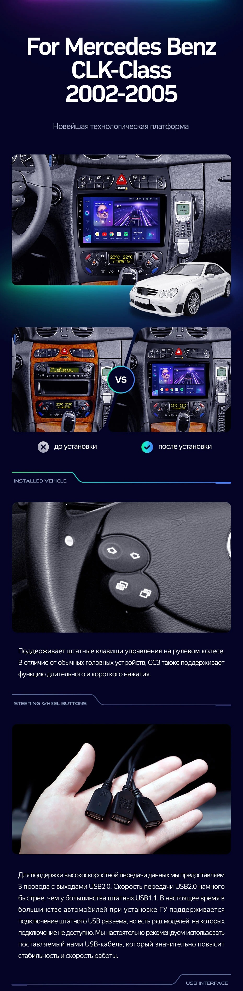 Штатная магнитола Teyes CC3 4/32 Mercedes-Benz CLK-Class C209 A209 (2002-2005) F2 - купить всего за 34 170 руб. в интернет-магазине в Орле Teyes.com.ru. ✓ Самый лучший выбор мультимедиа ✓ Лучшая замена штатному ГУ ✓ Тел. +7 (800) 775-31-74