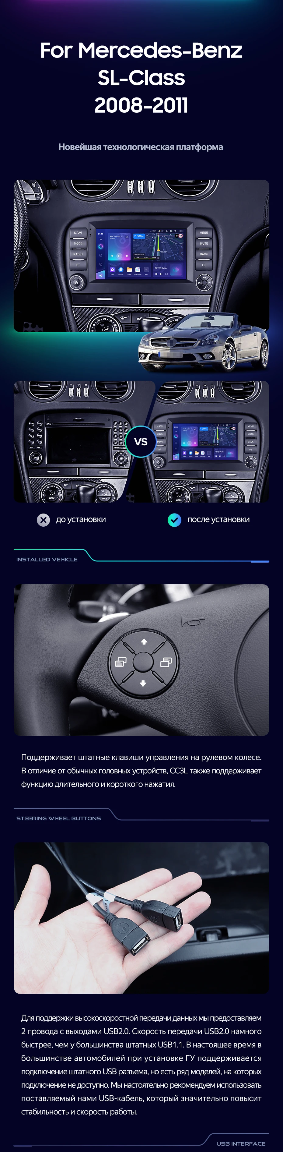 Штатная магнитола Teyes CC3 4/32 Mercedes-Benz SL-Class R230 (2008-2011) 7" - купить всего за 26 800 руб. в интернет-магазине в Орле Teyes.com.ru. ✓ Самый лучший выбор мультимедиа ✓ Лучшая замена штатному ГУ ✓ Тел. +7 (800) 775-31-74