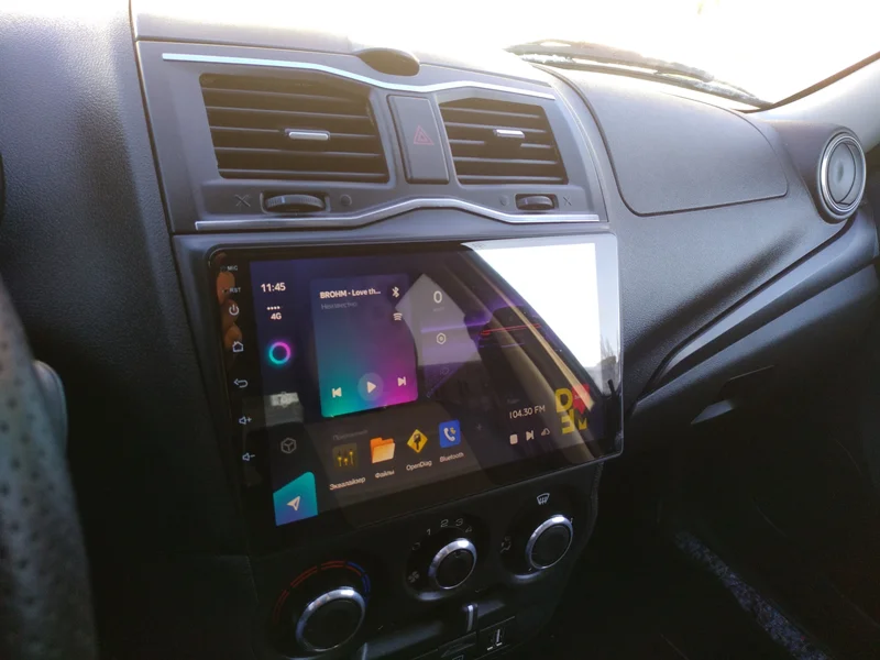 Защитное стекло 2,5D имеет слегка скругленные грани. Эта особенность делает его практически незаметным в районе краев экрана магнитолы, где он ограничен рамками корпуса.