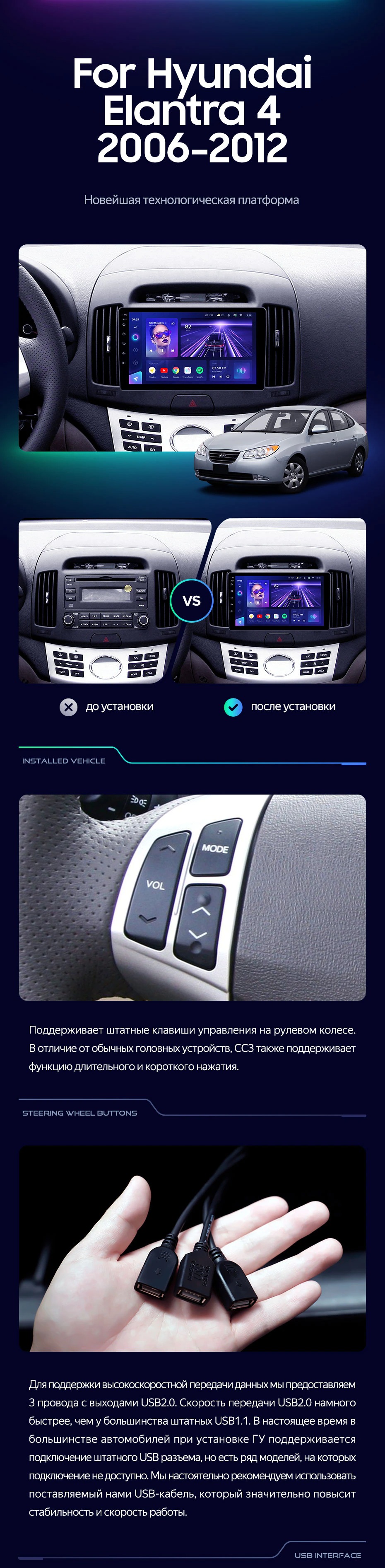 Штатная магнитола Teyes CC3L 4/32 Hyundai Elantra 4 HD (2006-2012) - купить всего за 23 200 руб. в интернет-магазине в Орле Teyes.com.ru. ✓ Самый лучший выбор мультимедиа ✓ Лучшая замена штатному ГУ ✓ Тел. +7 (800) 775-31-74