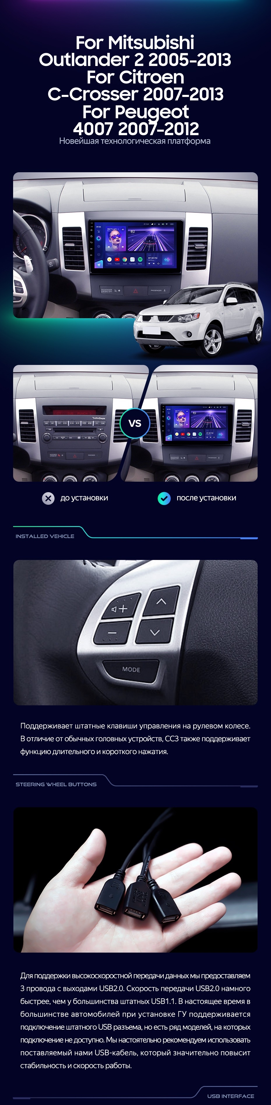 Штатная магнитола Teyes CC3L 4/32 Mitsubishi Outlander 2 (2005-2011) Тип-A - купить всего за 23 000 руб. в интернет-магазине в Орле Teyes.com.ru. ✓ Самый лучший выбор мультимедиа ✓ Лучшая замена штатному ГУ ✓ Тел. +7 (800) 775-31-74
