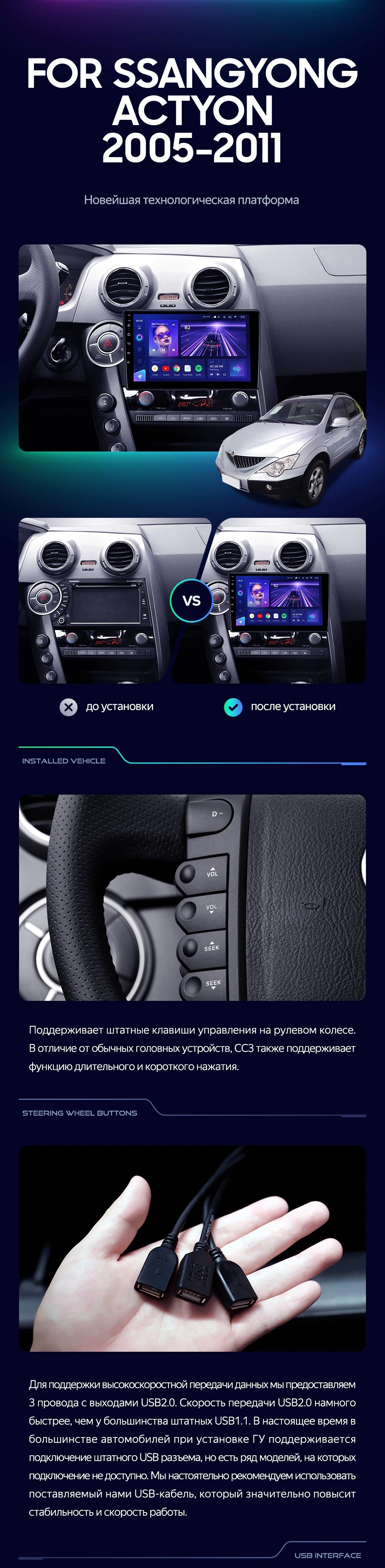 Штатная магнитола Teyes CC3L 4/32 SsangYong Actyon C100 (2005-2011) - купить всего за 23 100 руб. в интернет-магазине в Орле Teyes.com.ru. ✓ Самый лучший выбор мультимедиа ✓ Лучшая замена штатному ГУ ✓ Тел. +7 (800) 775-31-74