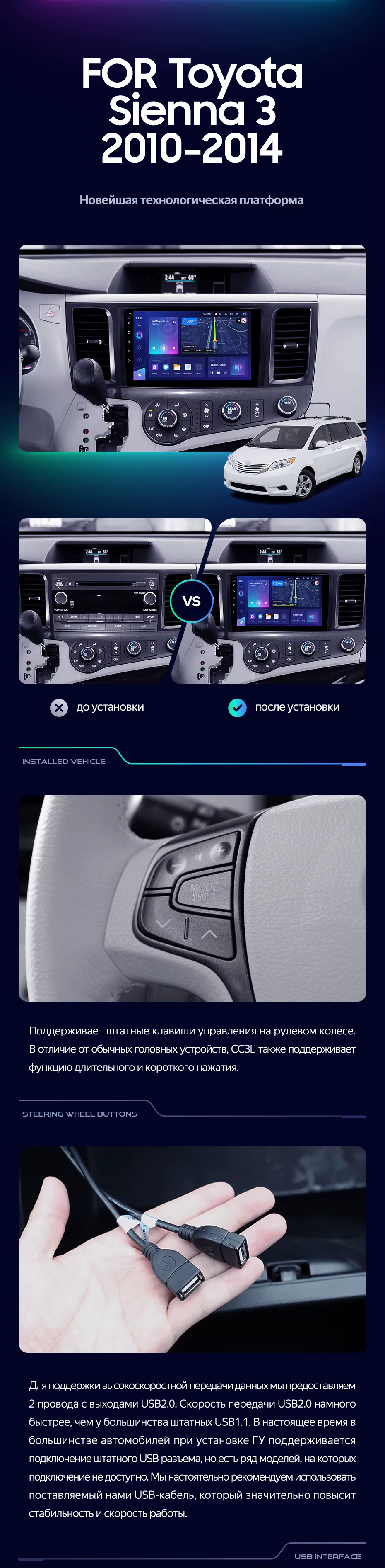 Штатная магнитола Teyes CC3L 4/32 Toyota Sienna 3 XL30 (2010-2014) - купить всего за 31 700 руб. в интернет-магазине в Орле Teyes.com.ru. ✓ Самый лучший выбор мультимедиа ✓ Лучшая замена штатному ГУ ✓ Тел. +7 (800) 775-31-74