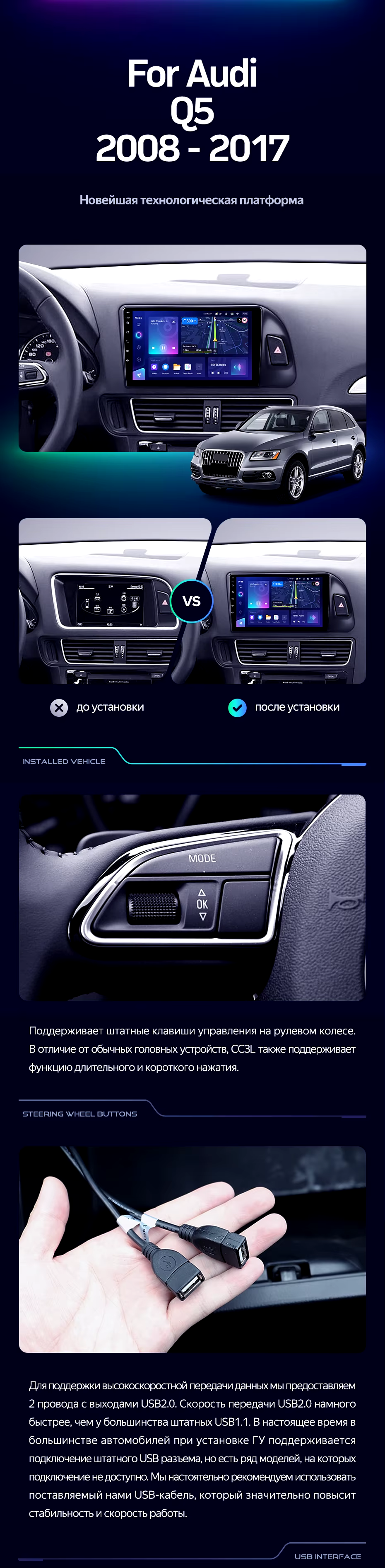 Штатная магнитола Teyes CC3L 4/64 Audi Q5 8R (2008-2017) Тип-B - купить всего за 33 800 руб. в интернет-магазине в Орле Teyes.com.ru. ✓ Самый лучший выбор мультимедиа ✓ Лучшая замена штатному ГУ ✓ Тел. +7 (800) 775-31-74