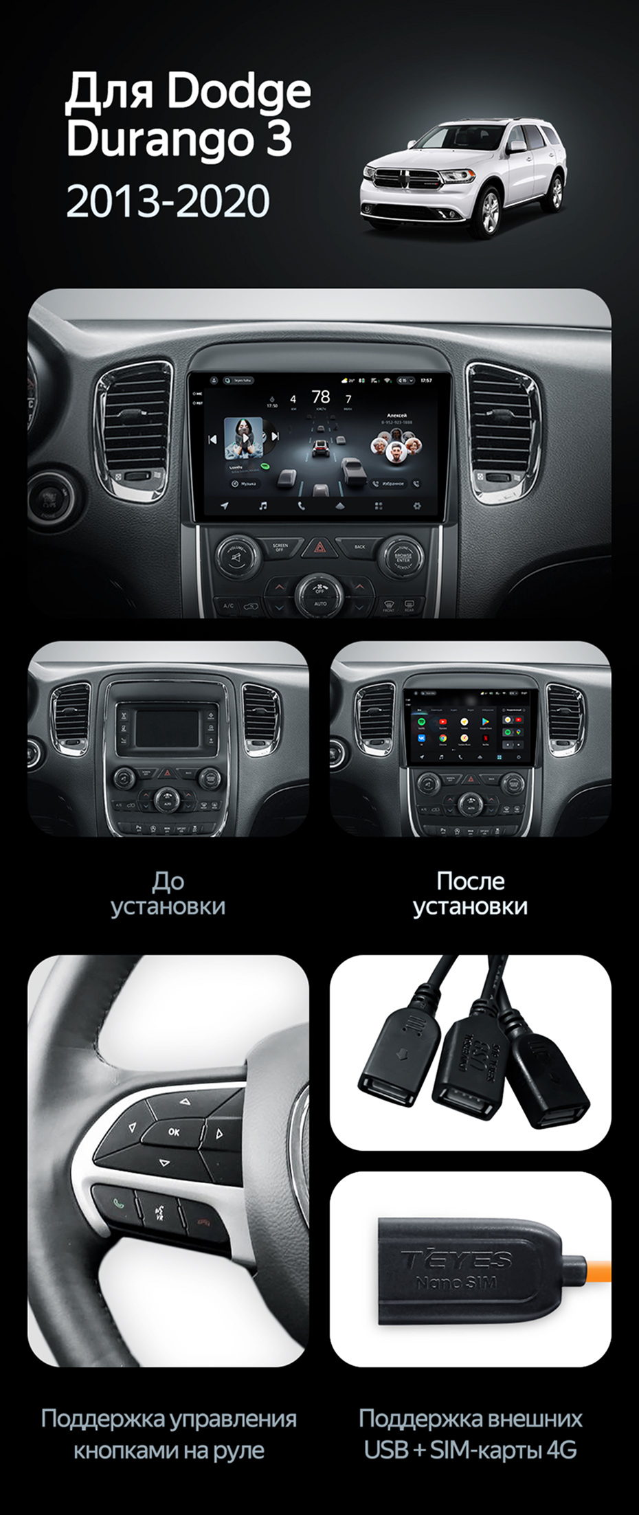 Штатная магнитола Teyes CC3L WiFi 2/32 Dodge Durango 3 (2013-2020) - купить всего за 19 300 руб. в интернет-магазине в Орле Teyes.com.ru. ✓ Самый лучший выбор мультимедиа ✓ Лучшая замена штатному ГУ ✓ Тел. +7 (800) 775-31-74