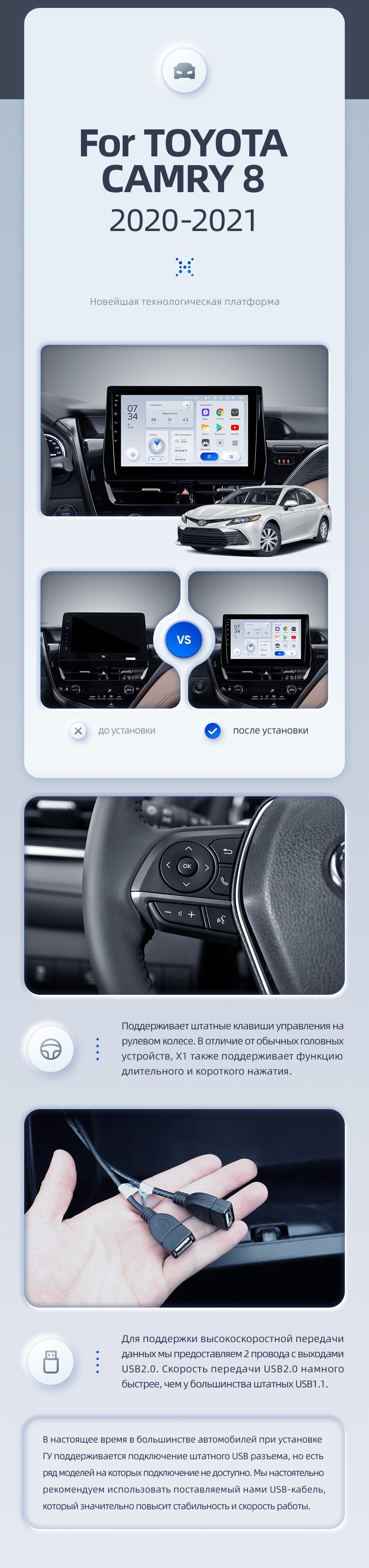 Эта штатная магнитола специально спроектирована и разработана для автомобилей, что гарантирует ее идеальную интеграцию с существующими элементами вашего авто. Вы получите возможность наслаждаться многообразием функций, включая воспроизведение музыки и видео, навигацию, Bluetooth-соединение, подключение задней камеры и многие другие.