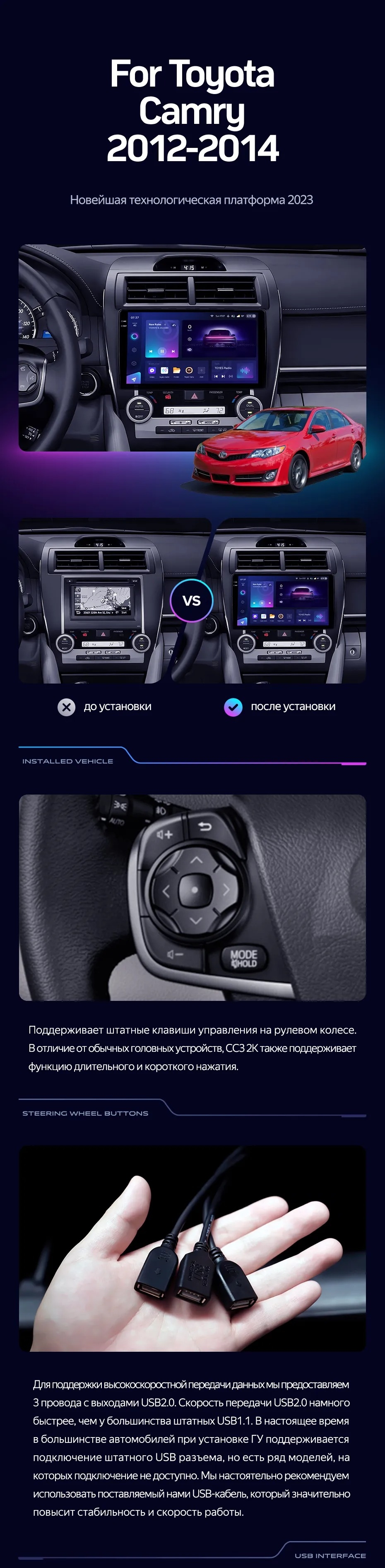 Штатная магнитола Teyes CC3L WiFi 2/32 Toyota Camry 7 XV 50 55 (2012-2014) Америка - купить всего за 14 100 руб. в интернет-магазине в Орле Teyes.com.ru. ✓ Самый лучший выбор мультимедиа ✓ Лучшая замена штатному ГУ ✓ Тел. +7 (800) 775-31-74