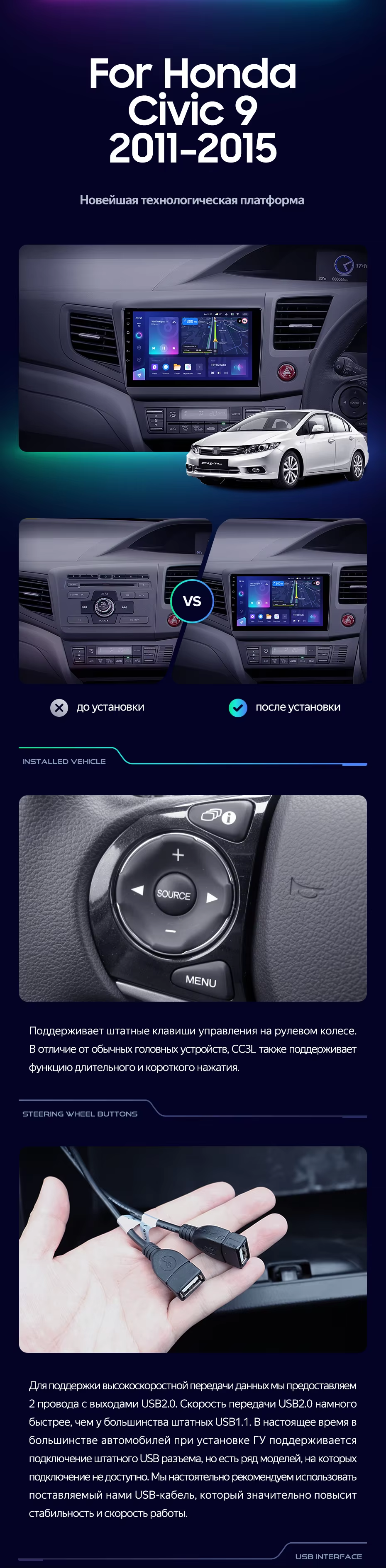 Штатная магнитола Teyes CC4 6/64 Civic 9 FB FK FD (2011-2015) Правый руль - купить всего за 49 400 руб. в интернет-магазине в Орле Teyes.com.ru. ✓ Самый лучший выбор мультимедиа ✓ Лучшая замена штатному ГУ ✓ Тел. +7 (800) 775-31-74