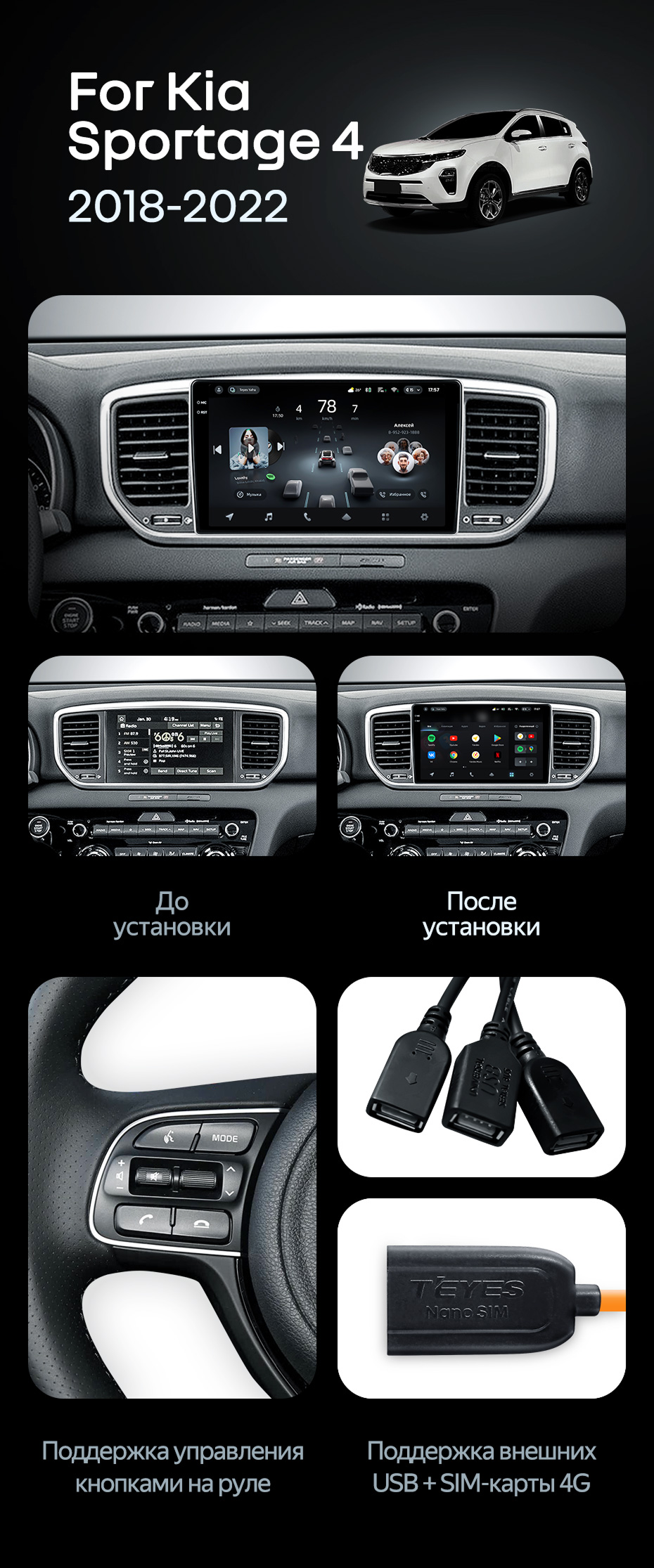 Штатная магнитола Teyes CC4 6/64 Kia Sportage 4 QL (2018-2022) Тип-B - купить всего за 49 390 руб. в интернет-магазине в Орле Teyes.com.ru. ✓ Самый лучший выбор мультимедиа ✓ Лучшая замена штатному ГУ ✓ Тел. +7 (800) 775-31-74