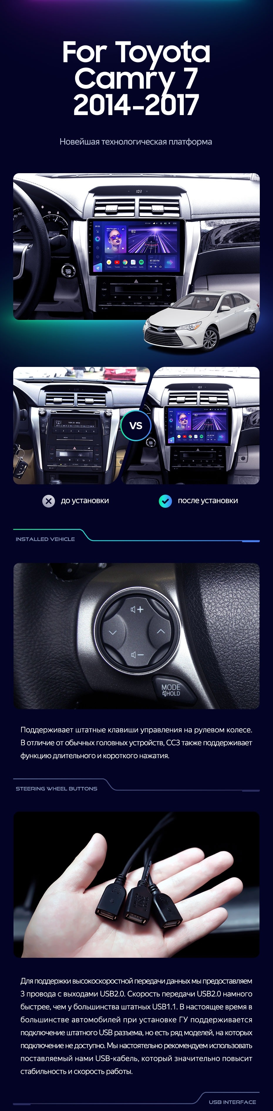Штатная магнитола Teyes CC4 6/64 Toyota Camry 7 XV 50 55 (2014-2017) F4 - купить всего за 47 800 руб. в интернет-магазине в Орле Teyes.com.ru. ✓ Самый лучший выбор мультимедиа ✓ Лучшая замена штатному ГУ ✓ Тел. +7 (800) 775-31-74