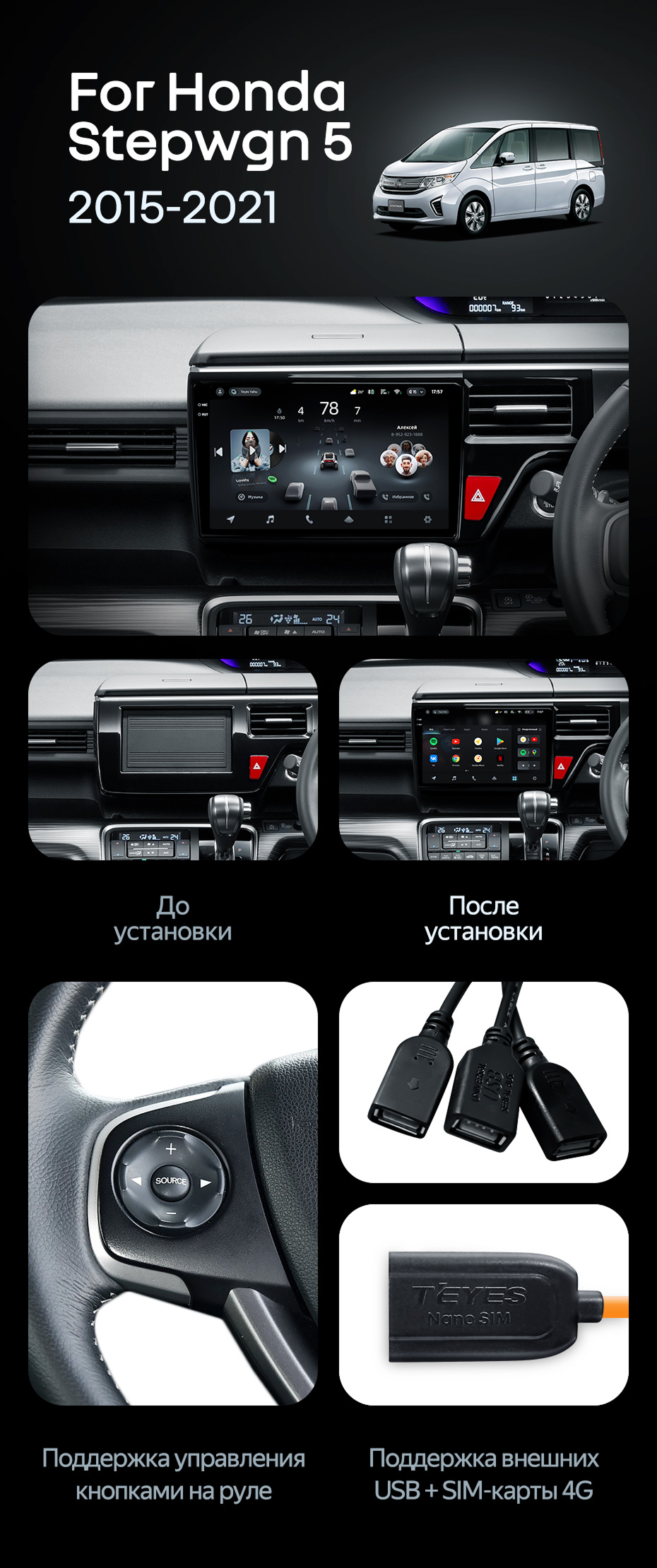Штатная магнитола Teyes CC4 8/128 Honda Stepwgn 5 (2015-2021) правый руль - купить всего за 53 390 руб. в интернет-магазине в Орле Teyes.com.ru. ✓ Самый лучший выбор мультимедиа ✓ Лучшая замена штатному ГУ ✓ Тел. +7 (800) 775-31-74