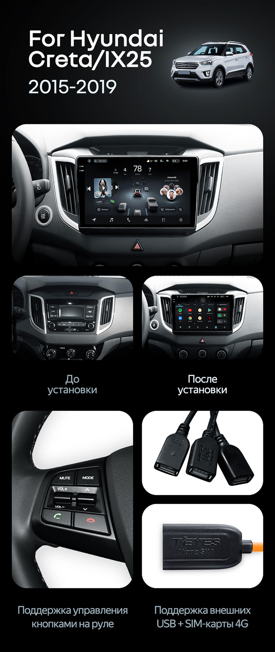 Штатная магнитола Teyes CC4 8/128 Hyundai Creta 1 (2015-2019) с кнопками - купить всего за 54 100 руб. в интернет-магазине в Орле Teyes.com.ru. ✓ Самый лучший выбор мультимедиа ✓ Лучшая замена штатному ГУ ✓ Тел. +7 (800) 775-31-74