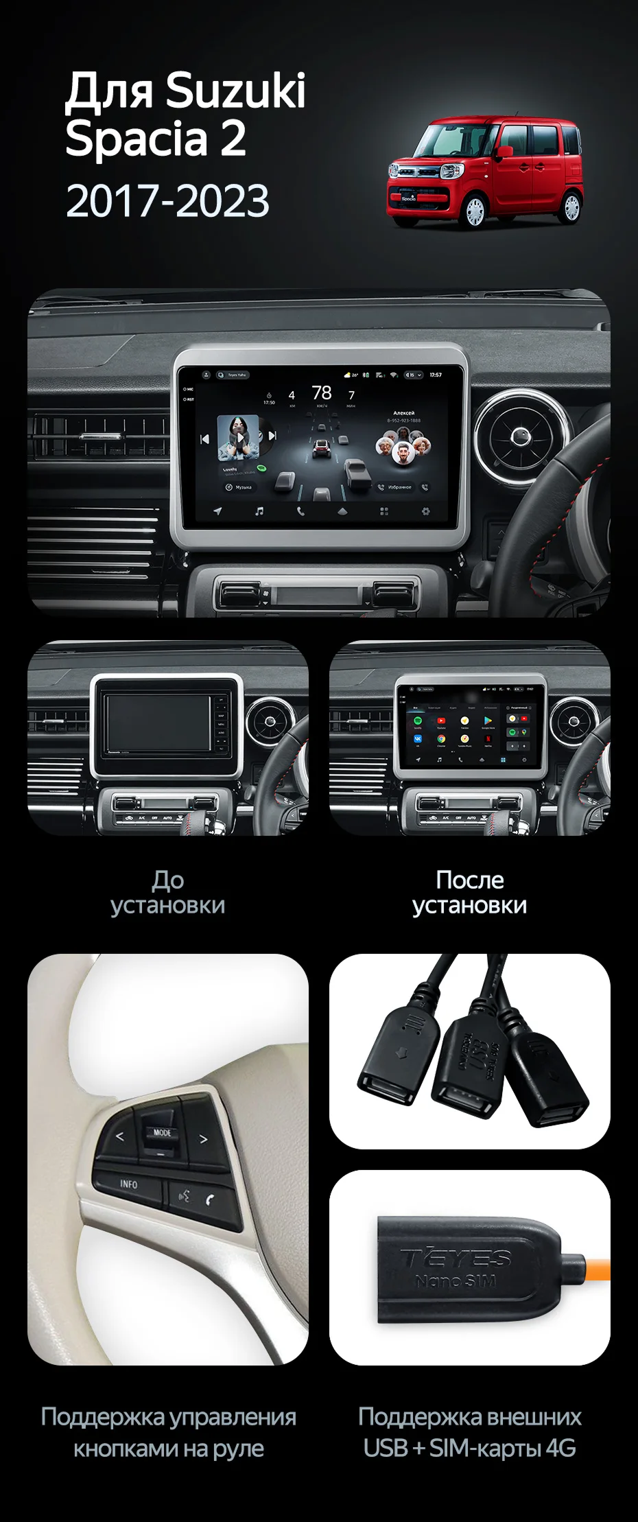 Штатная магнитола Teyes CC4 8/128 Suzuki Spacia 2 (2017-2023) - купить всего за 52 900 руб. в интернет-магазине в Орле Teyes.com.ru. ✓ Самый лучший выбор мультимедиа ✓ Лучшая замена штатному ГУ ✓ Тел. +7 (800) 775-31-74