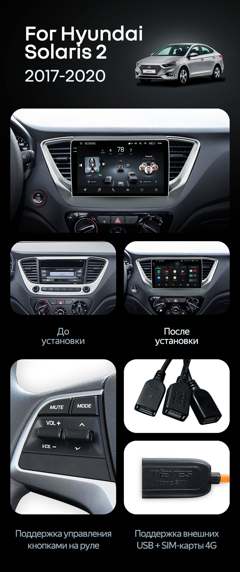 Штатная магнитола Teyes CC4 Pro 12/256 Hyundai Solaris 2 (2017-2020) F1 Тип-A - купить всего за 66 140 руб. в интернет-магазине в Орле Teyes.com.ru. ✓ Самый лучший выбор мультимедиа ✓ Лучшая замена штатному ГУ ✓ Тел. +7 (800) 775-31-74