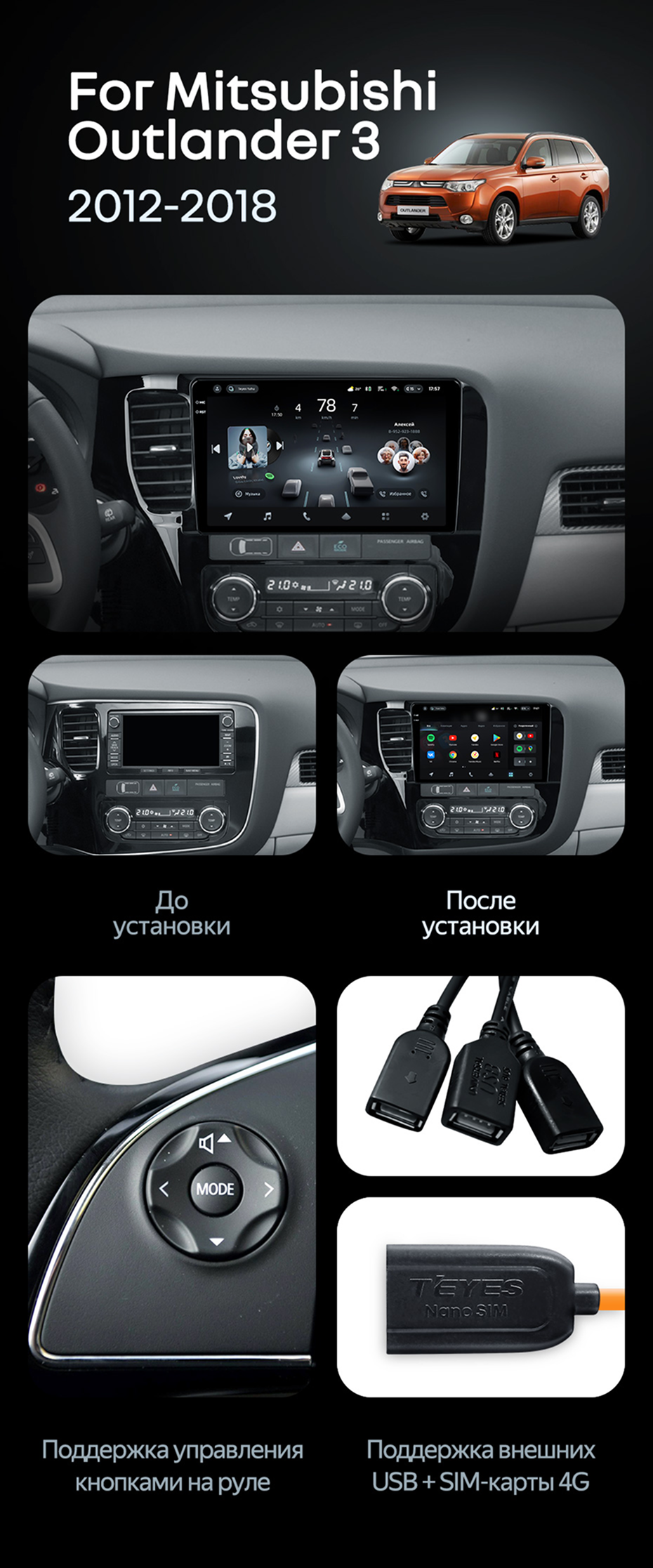 Штатная магнитола Teyes CC4 Pro 12/256 Mitsubishi Outlander 3 GF0W GG0W (2012-2018) Тип-A - купить всего за 65 960 руб. в интернет-магазине в Орле Teyes.com.ru. ✓ Самый лучший выбор мультимедиа ✓ Лучшая замена штатному ГУ ✓ Тел. +7 (800) 775-31-74