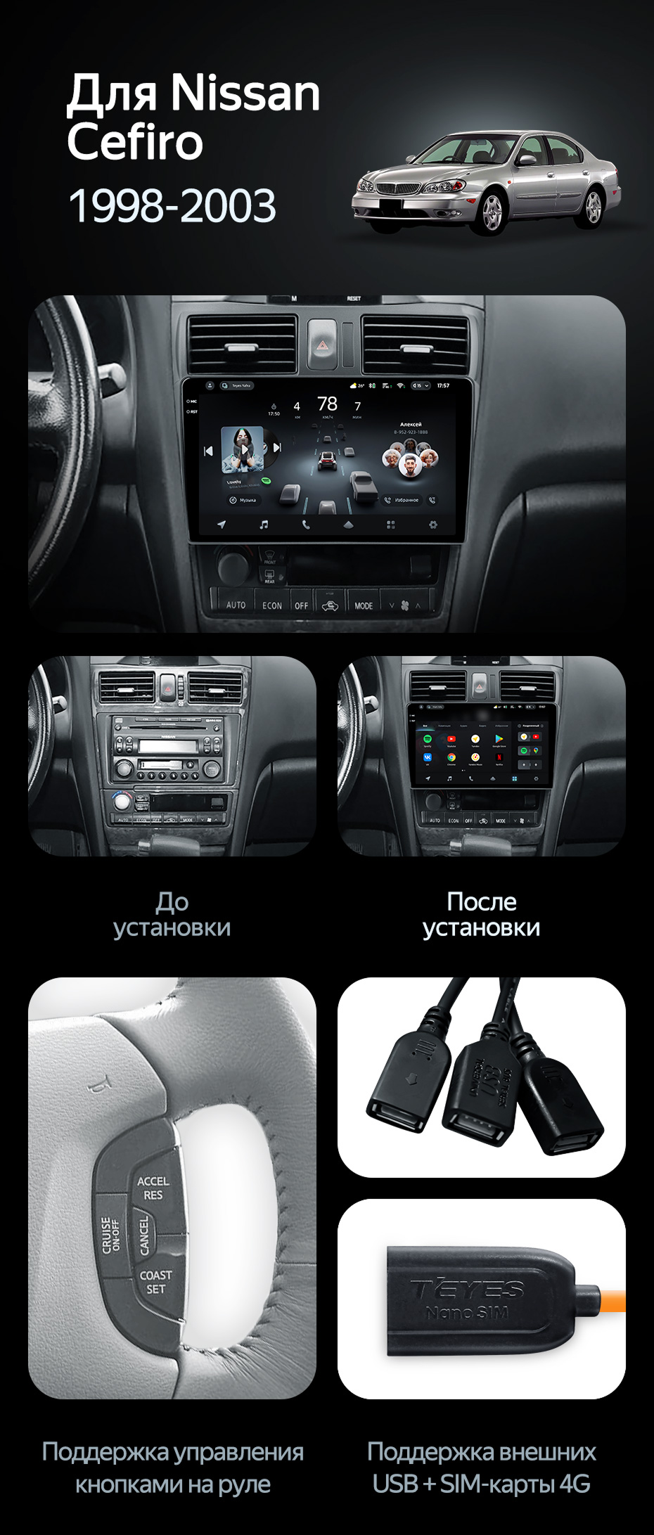 Штатная магнитола Teyes CC4 Pro 12/256 Nissan Cefiro 3 A33 (1998-2003) F2 - купить всего за 66 440 руб. в интернет-магазине в Орле Teyes.com.ru. ✓ Самый лучший выбор мультимедиа ✓ Лучшая замена штатному ГУ ✓ Тел. +7 (800) 775-31-74