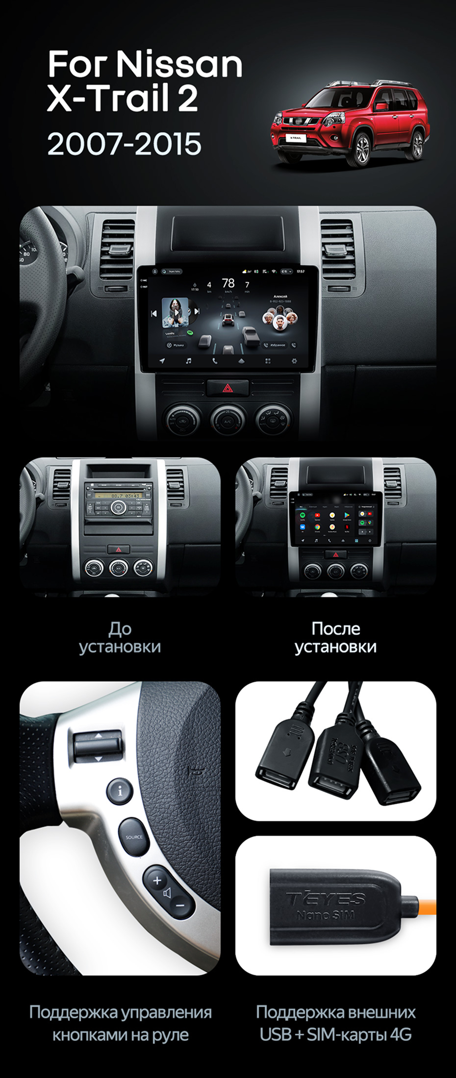 Штатная магнитола Teyes CC4 Pro 12/256 Nissan X-Trail T31 (2007-2015) - купить всего за 65 680 руб. в интернет-магазине в Орле Teyes.com.ru. ✓ Самый лучший выбор мультимедиа ✓ Лучшая замена штатному ГУ ✓ Тел. +7 (800) 775-31-74