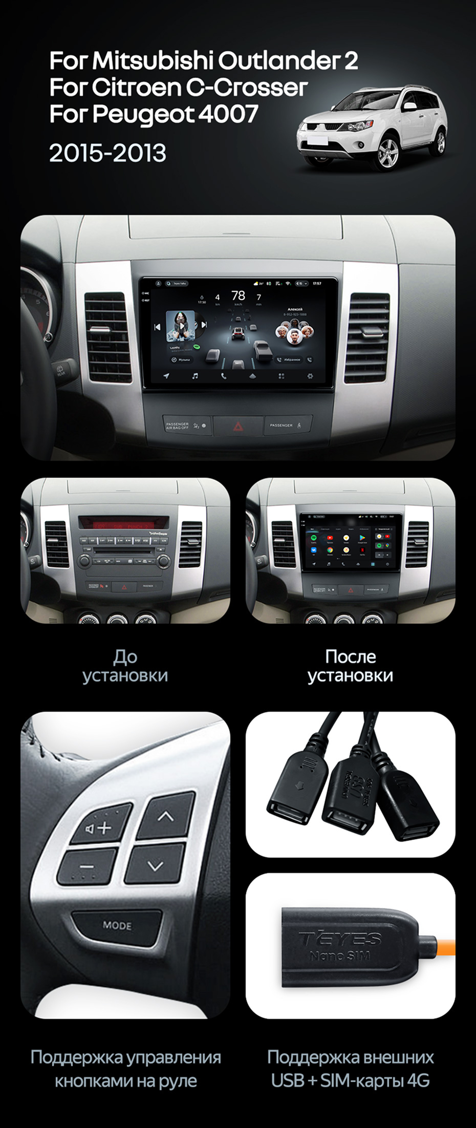 Штатная магнитола Teyes CC4 Pro 12/256 Peugeot 4007 (2007-2012) Тип-B - купить всего за 67 480 руб. в интернет-магазине в Орле Teyes.com.ru. ✓ Самый лучший выбор мультимедиа ✓ Лучшая замена штатному ГУ ✓ Тел. +7 (800) 775-31-74