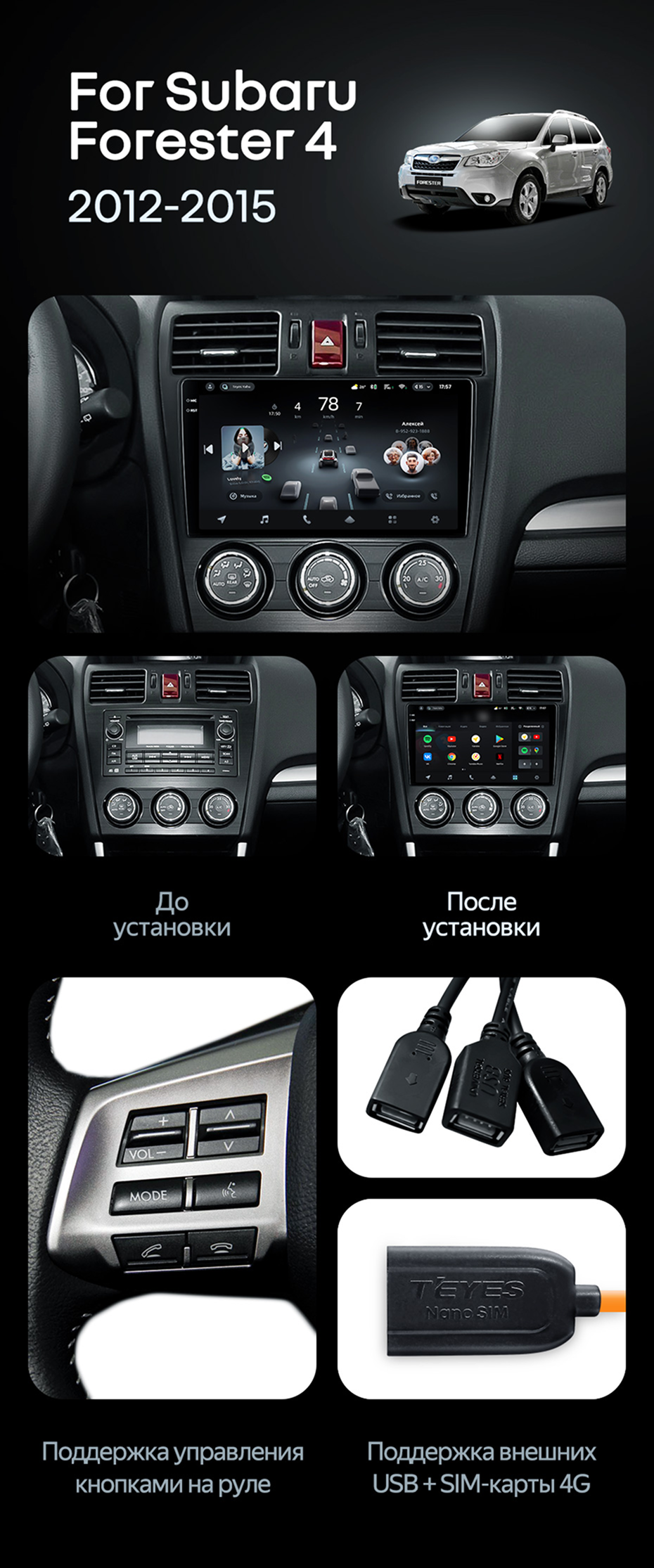 Штатная магнитола Teyes CC4 Pro 12/256 Subaru Forester 4 SJ (2012-2015) Тип-A - купить всего за 65 950 руб. в интернет-магазине в Орле Teyes.com.ru. ✓ Самый лучший выбор мультимедиа ✓ Лучшая замена штатному ГУ ✓ Тел. +7 (800) 775-31-74