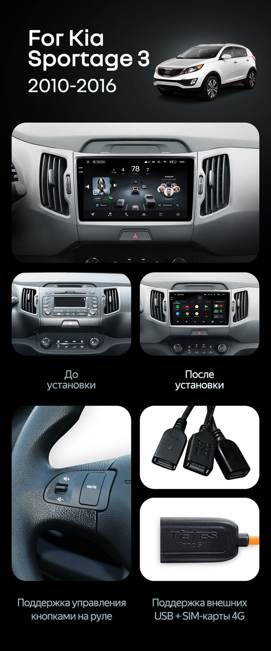Штатная магнитола Teyes CC4 Pro 8/128 Kia Sportage 3 SL (2010-2016) Тип-B - купить всего за 60 820 руб. в интернет-магазине в Орле Teyes.com.ru. ✓ Самый лучший выбор мультимедиа ✓ Лучшая замена штатному ГУ ✓ Тел. +7 (800) 775-31-74