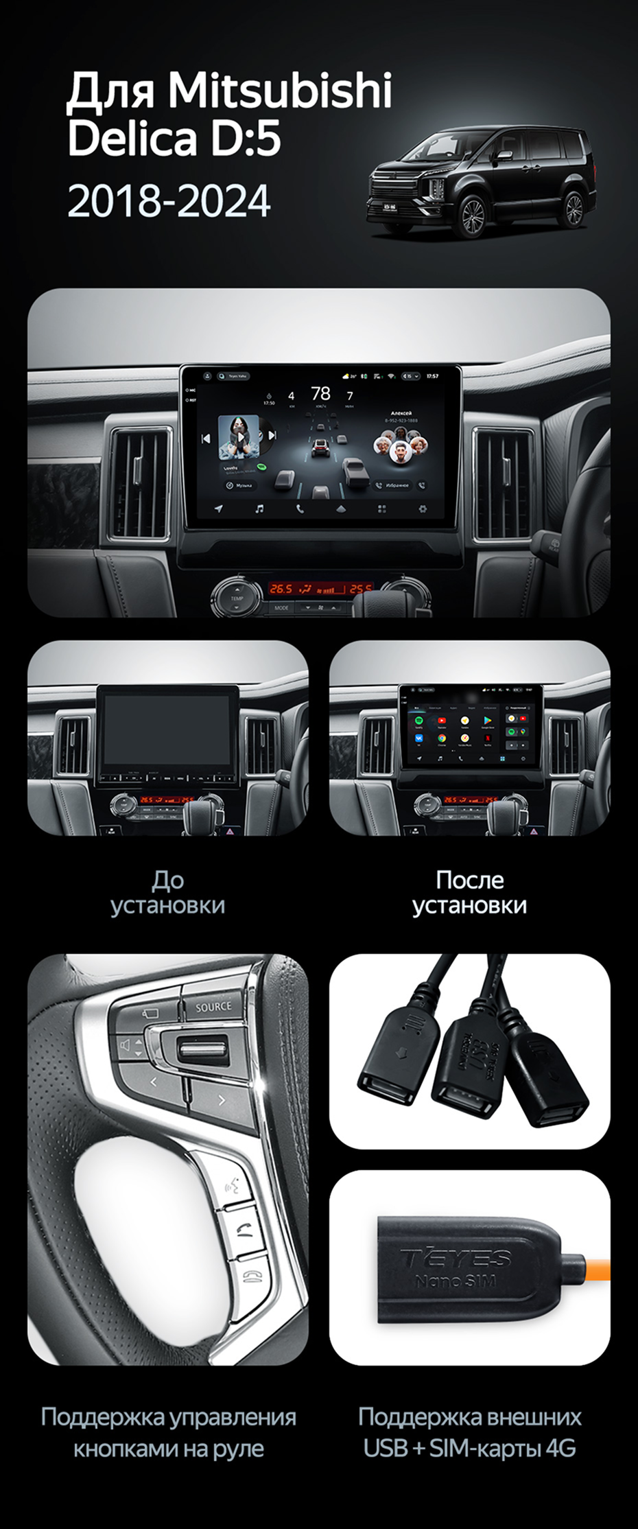 Штатная магнитола Teyes CC4 Pro 8/128 Mitsubishi Delica D:5 (2018-2024) - купить всего за 57 000 руб. в интернет-магазине в Орле Teyes.com.ru. ✓ Самый лучший выбор мультимедиа ✓ Лучшая замена штатному ГУ ✓ Тел. +7 (800) 775-31-74