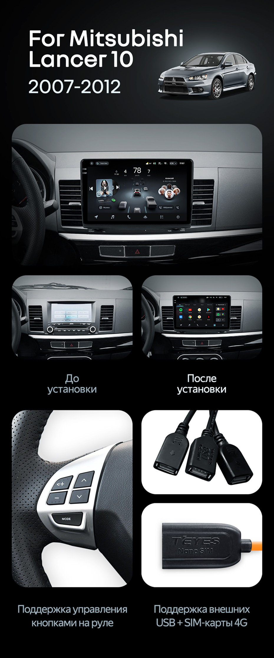 Штатная магнитола Teyes CC4 Pro 8/128 Mitsubishi Lancer 10 CY (2007-2012) Тип-B - купить всего за 56 400 руб. в интернет-магазине в Орле Teyes.com.ru. ✓ Самый лучший выбор мультимедиа ✓ Лучшая замена штатному ГУ ✓ Тел. +7 (800) 775-31-74