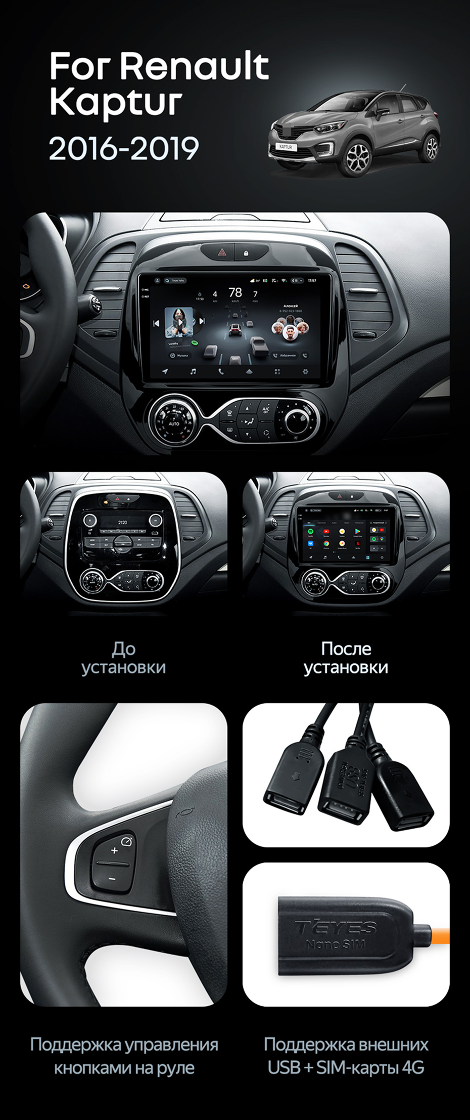Штатная магнитола Teyes CC4 Pro 8/128 Renault Kaptur (2016-2019) F2 - купить всего за 59 570 руб. в интернет-магазине в Орле Teyes.com.ru. ✓ Самый лучший выбор мультимедиа ✓ Лучшая замена штатному ГУ ✓ Тел. +7 (800) 775-31-74