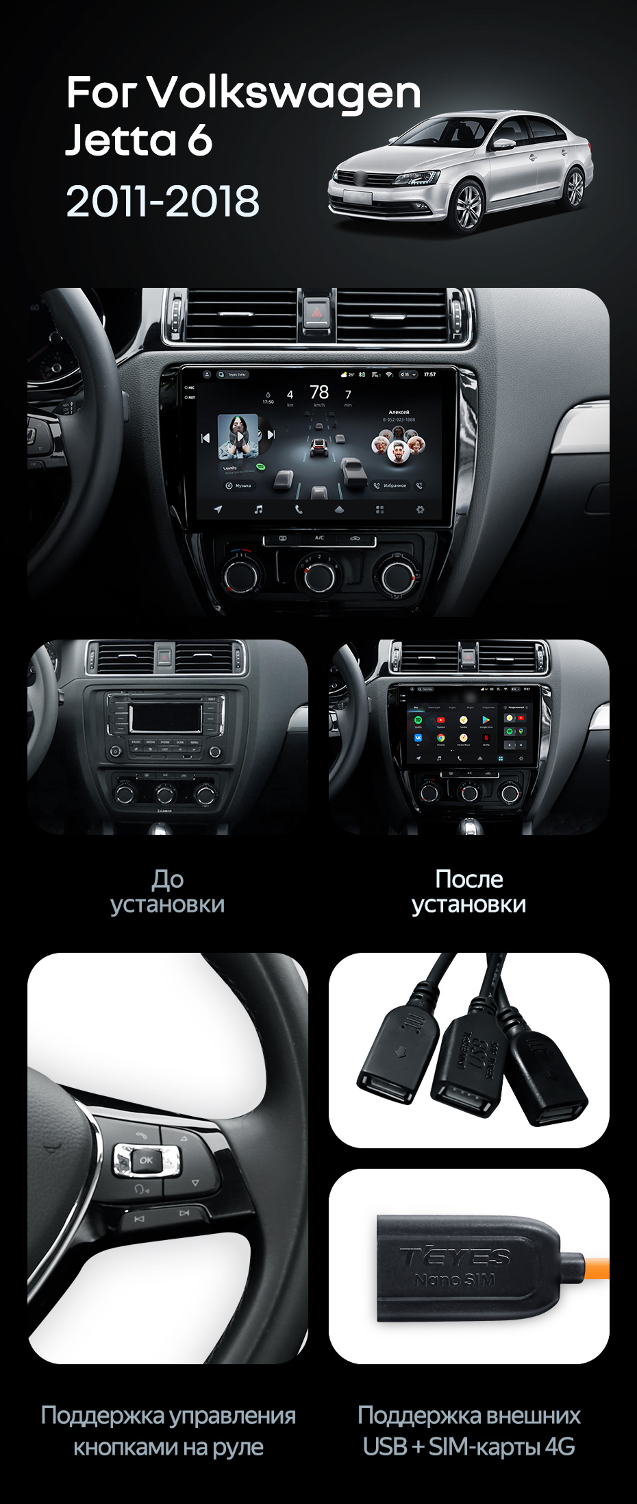 Штатная магнитола Teyes CC4 Pro 8/128 Volkswagen Jetta 6 (2011-2018) - купить всего за 56 330 руб. в интернет-магазине в Орле Teyes.com.ru. ✓ Самый лучший выбор мультимедиа ✓ Лучшая замена штатному ГУ ✓ Тел. +7 (800) 775-31-74