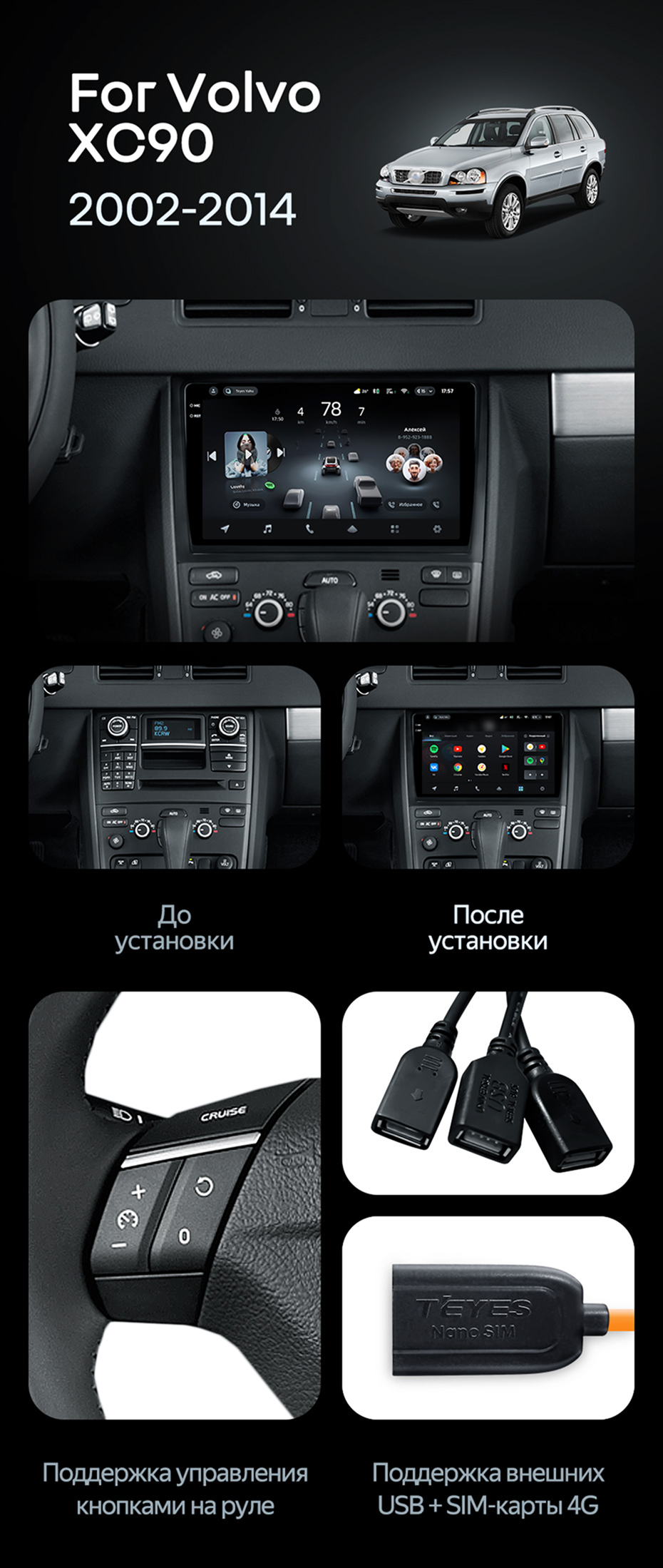 Штатная магнитола Teyes CC4 Pro 8/128 Volvo XC90 (2007-2014) F2 (комплект для установки нижней части) - купить всего за 62 040 руб. в интернет-магазине в Орле Teyes.com.ru. ✓ Самый лучший выбор мультимедиа ✓ Лучшая замена штатному ГУ ✓ Тел. +7 (800) 775-31-74
