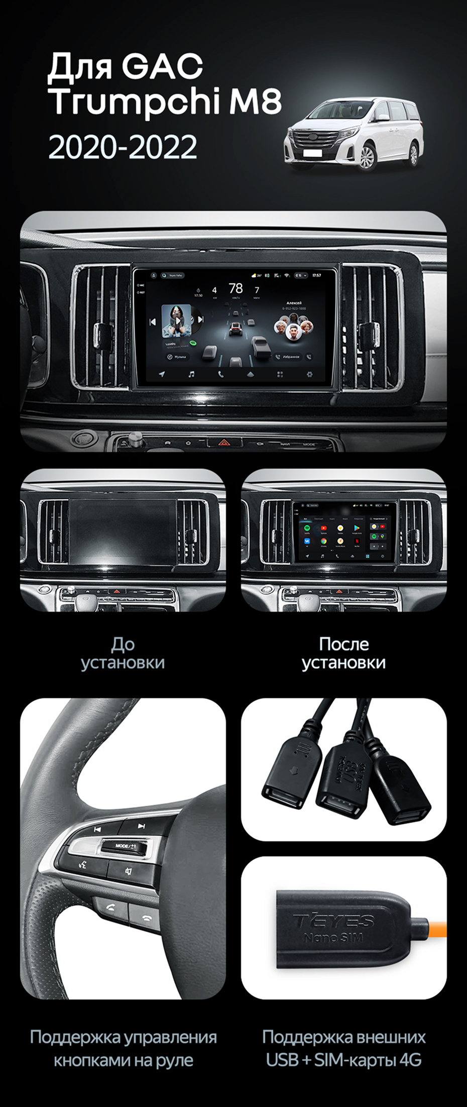 Штатная магнитола Teyes CC4L 4/64 GAC Trumpchi M8 (2020-2022) - купить всего за 30 200 руб. в интернет-магазине в Орле Teyes.com.ru. ✓ Самый лучший выбор мультимедиа ✓ Лучшая замена штатному ГУ ✓ Тел. +7 (800) 775-31-74