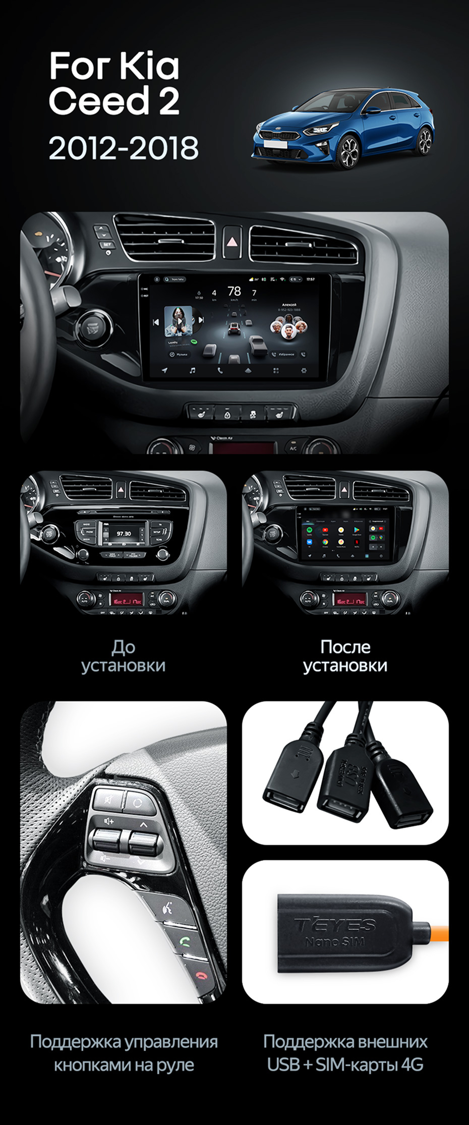 Штатная магнитола Teyes CC4L 6/64 Kia Ceed 2 JD (2012-2018) - купить всего за 30 920 руб. в интернет-магазине в Орле Teyes.com.ru. ✓ Самый лучший выбор мультимедиа ✓ Лучшая замена штатному ГУ ✓ Тел. +7 (800) 775-31-74
