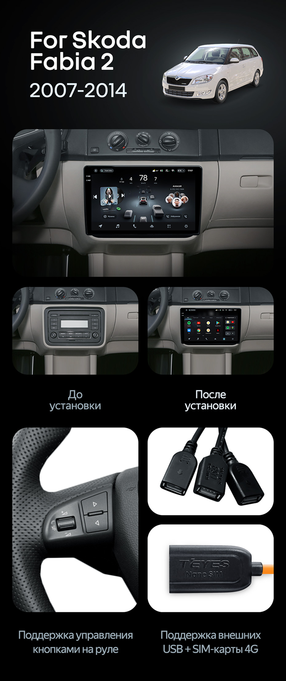 Штатная магнитола Teyes CC4L 6/64 Skoda Fabia 2 (2007-2014) - купить всего за 30 800 руб. в интернет-магазине в Орле Teyes.com.ru. ✓ Самый лучший выбор мультимедиа ✓ Лучшая замена штатному ГУ ✓ Тел. +7 (800) 775-31-74