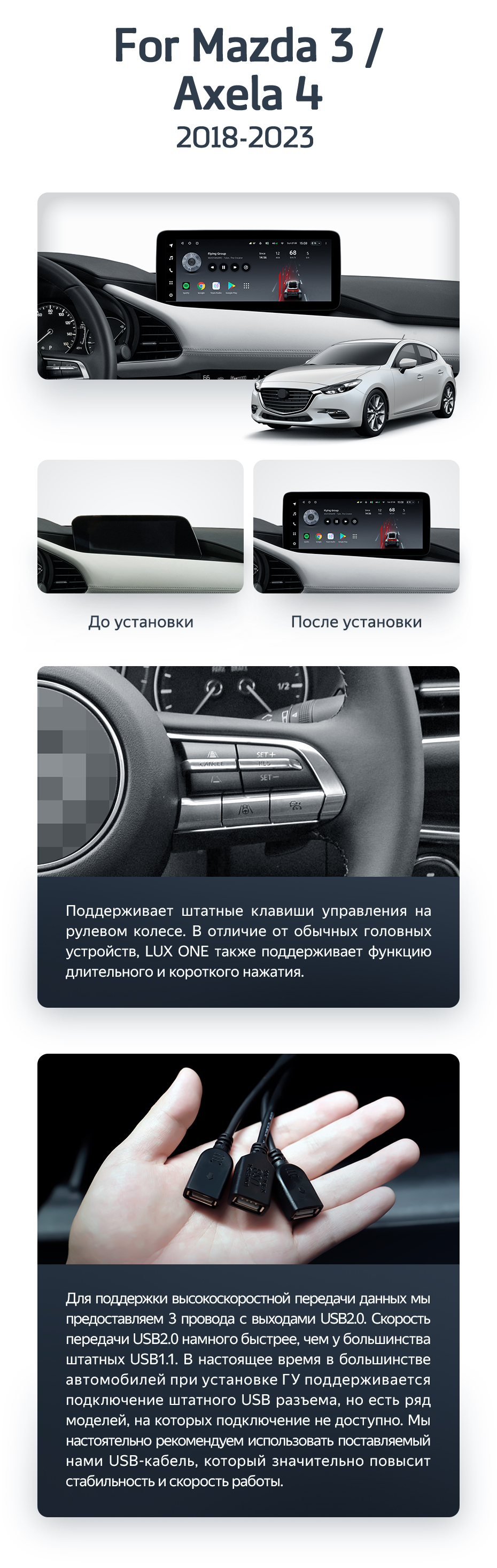 Штатная магнитола Teyes LUX ONE 4/64 Mazda 3 BP (2018-2023) Тип-A - купить всего за 39 600 руб. в интернет-магазине в Орле Teyes.com.ru. ✓ Самый лучший выбор мультимедиа ✓ Лучшая замена штатному ГУ ✓ Тел. +7 (800) 775-31-74
