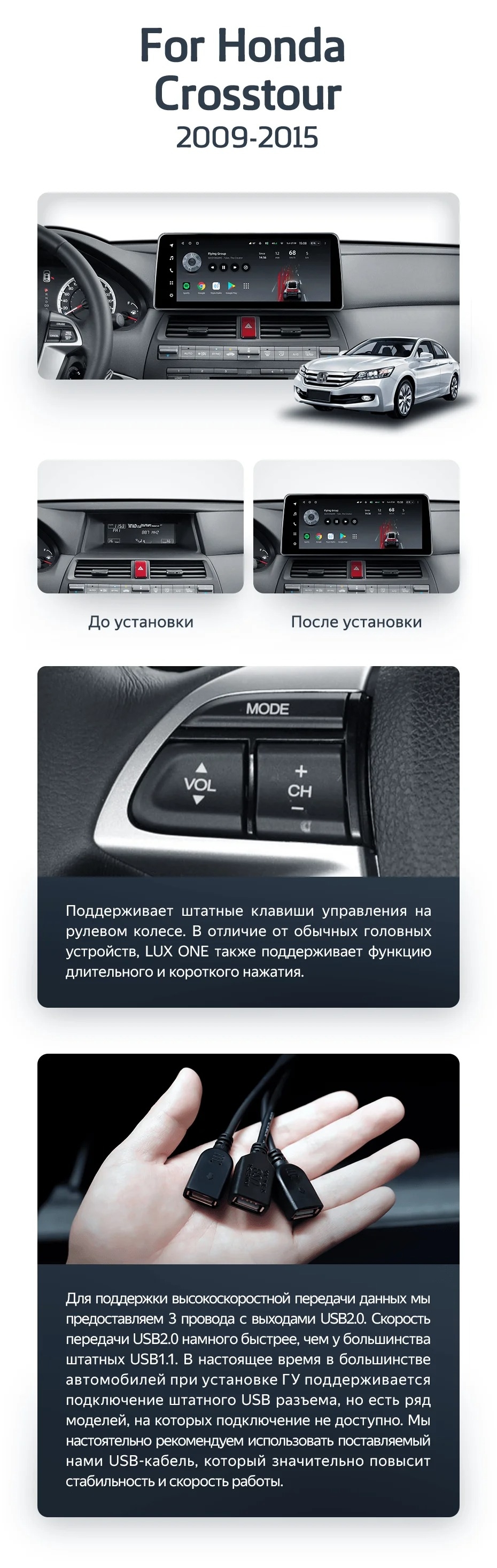Штатная магнитола Teyes LUX ONE 6/128 Honda Crosstour 1 TF (2009-2015) - купить всего за 47 200 руб. в интернет-магазине в Орле Teyes.com.ru. ✓ Самый лучший выбор мультимедиа ✓ Лучшая замена штатному ГУ ✓ Тел. +7 (800) 775-31-74