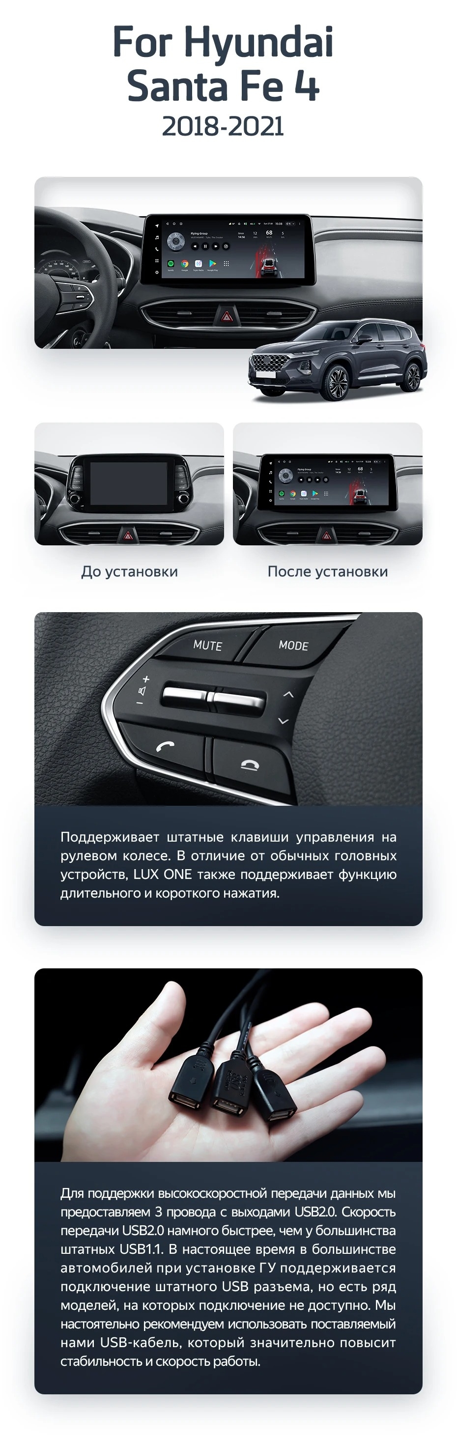Штатная магнитола Teyes LUX ONE 6/128 Hyundai Santa Fe 4 (2018-2021) - купить всего за 48 300 руб. в интернет-магазине в Орле Teyes.com.ru. ✓ Самый лучший выбор мультимедиа ✓ Лучшая замена штатному ГУ ✓ Тел. +7 (800) 775-31-74