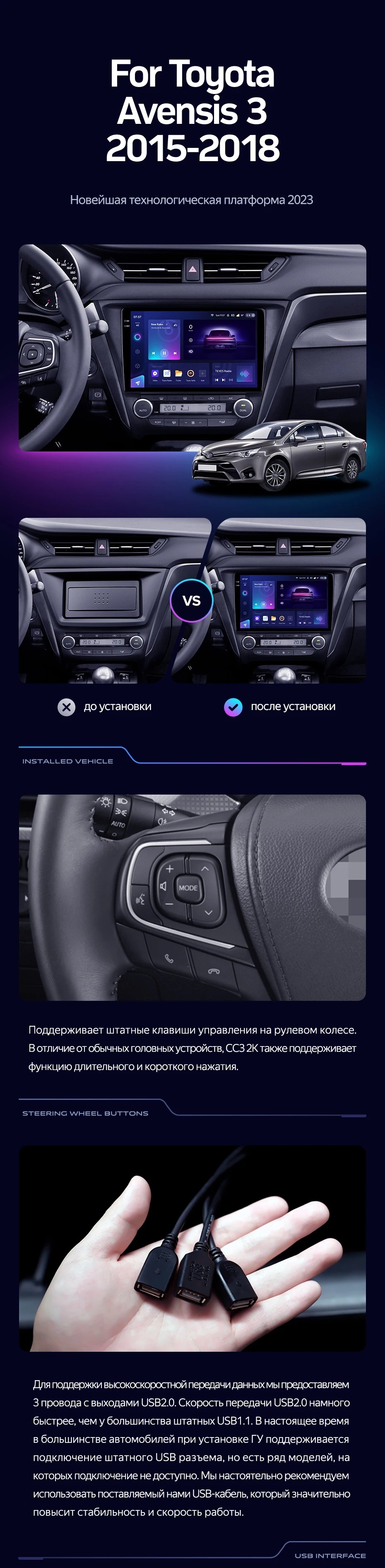 Полный комплект установки магнитолы Teyes с рамкой и проводкой можно выбрать в каталоге штатных магнитол Toyota Avensis 3 (2015-2018) (F2).